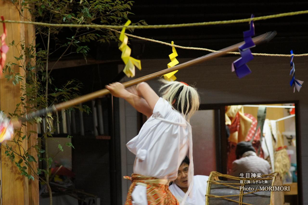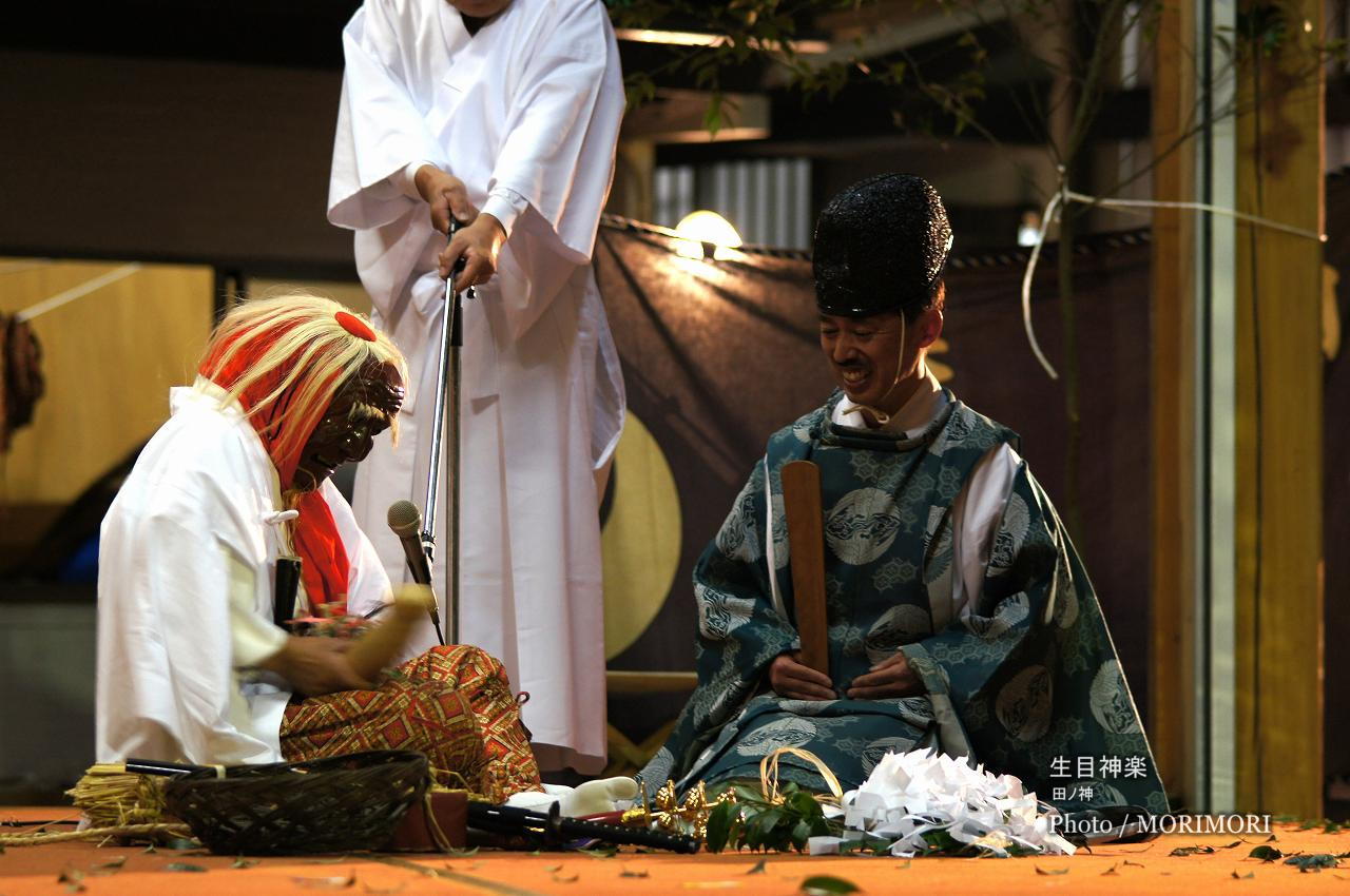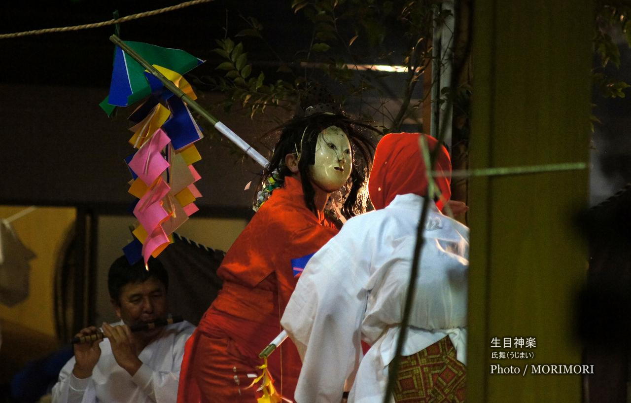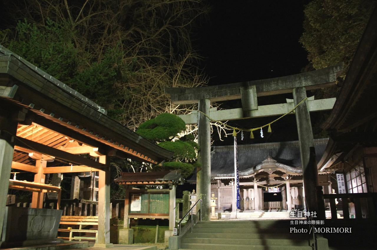 生目神楽は、五穀豊穣(ほうじょう)と無病息災を祈念、3月15日に近い土曜日に、神事の後、午後二時頃より夜半にかけて、生目神社神楽殿で奉納されます。
