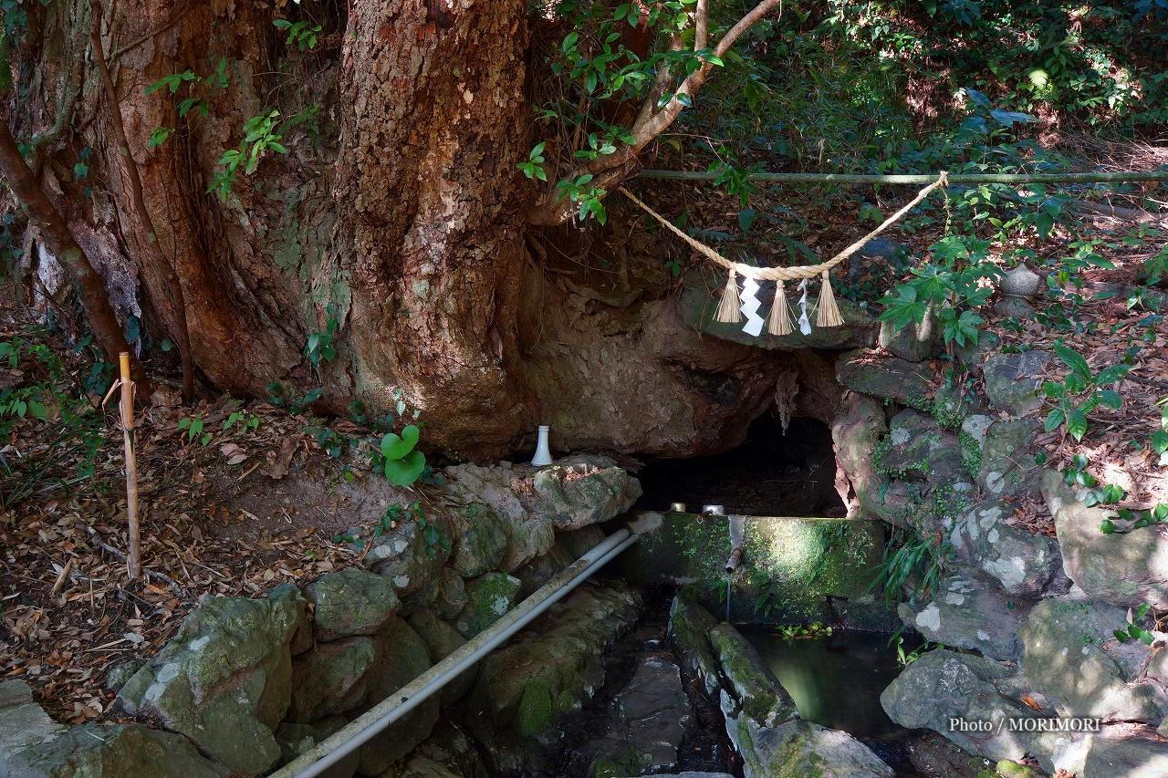 生目神社の鎮座する亀井山はシラス台地(鹿児島県と宮崎県に広がる火山性台地)でできていて、吸いこまれた水は大木の下に空洞を作り、湧水となっております。