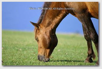 空気の澄んだ秋という事もあり、朝からぬけるような青空で、志布志湾を背景にまだ青い牧草と野生馬の撮影が出来たのはラッキーでした。