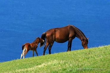 御崎馬は野生馬です。静かに草を食んでいる時でも、縄張り発情、等々の事で急に走り出したり、暴れたりする事が多々ありますので、車の運転には十分注意してください。車を降りて見学される時も、馬に近寄り過ぎないように距離をもって観察してください。