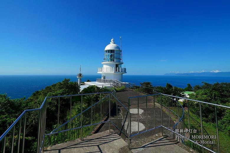 宮崎県の最南端に位置し、海の青さと岬の緑に囲まれた、白亜の美しい灯台です。