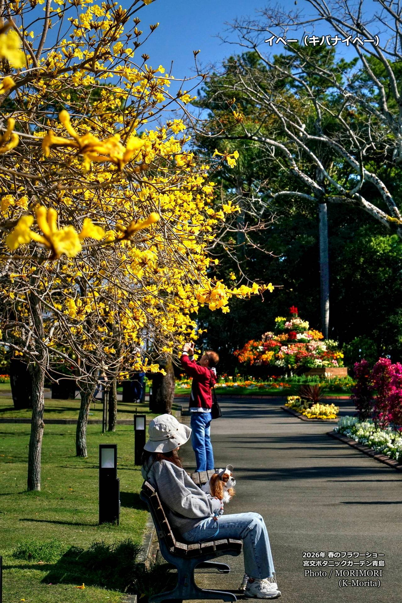 葉の無い枝に鮮やかな黄色い花を付けるイペーの木は、宮崎市内でも良く見かけますね。
