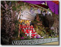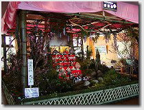 酒泉の杜のホテルの玄関を入ると正面ロビー前にあります。周囲に飾り付けがしてあり360度どこからでも見れる雛山です。 |
