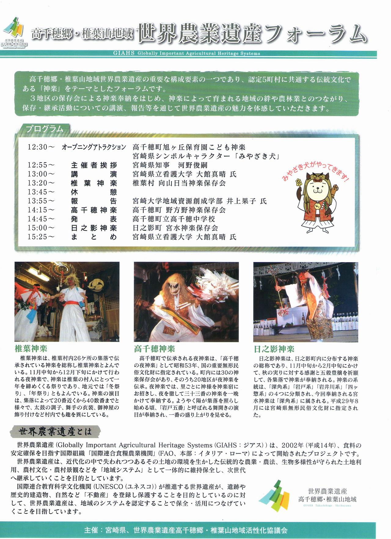 世界農業遺産フォーラム 高千穂郷・椎葉山地域世界農業遺産〜神楽がつなぐ地域の絆〜