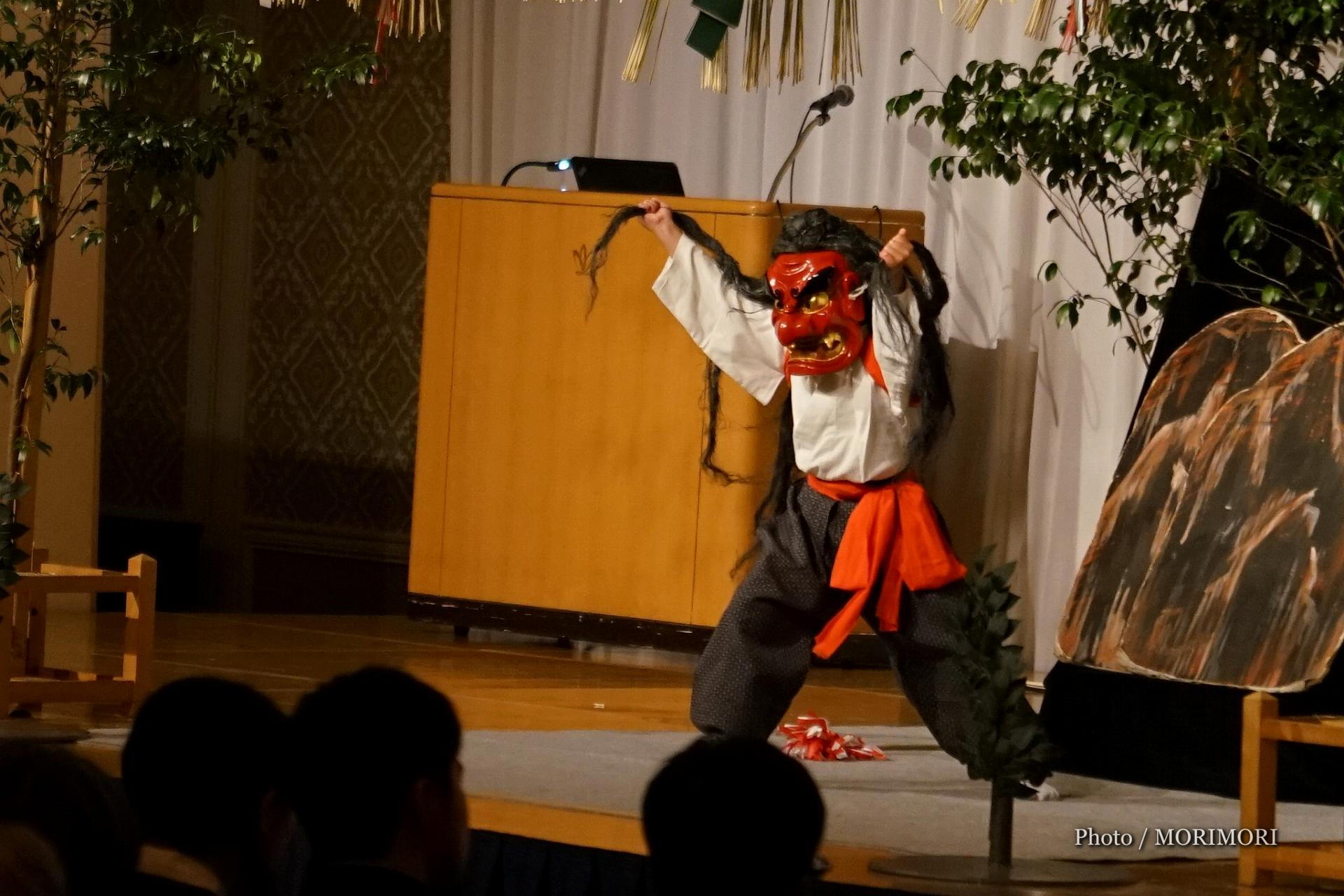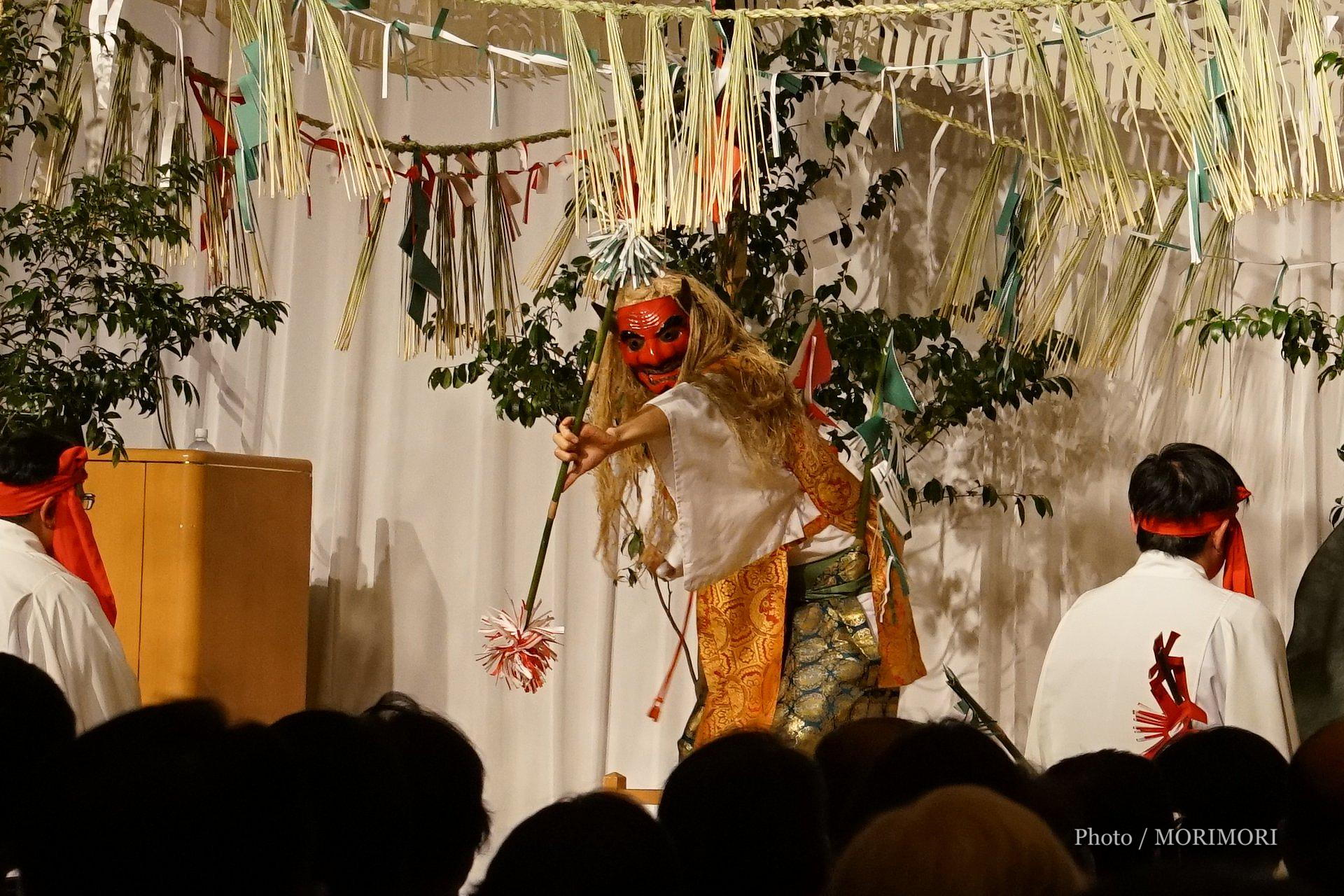 - 14:15〜 高千穂神楽 高千穂町野方野神楽保存会(杉登り・入鬼神)