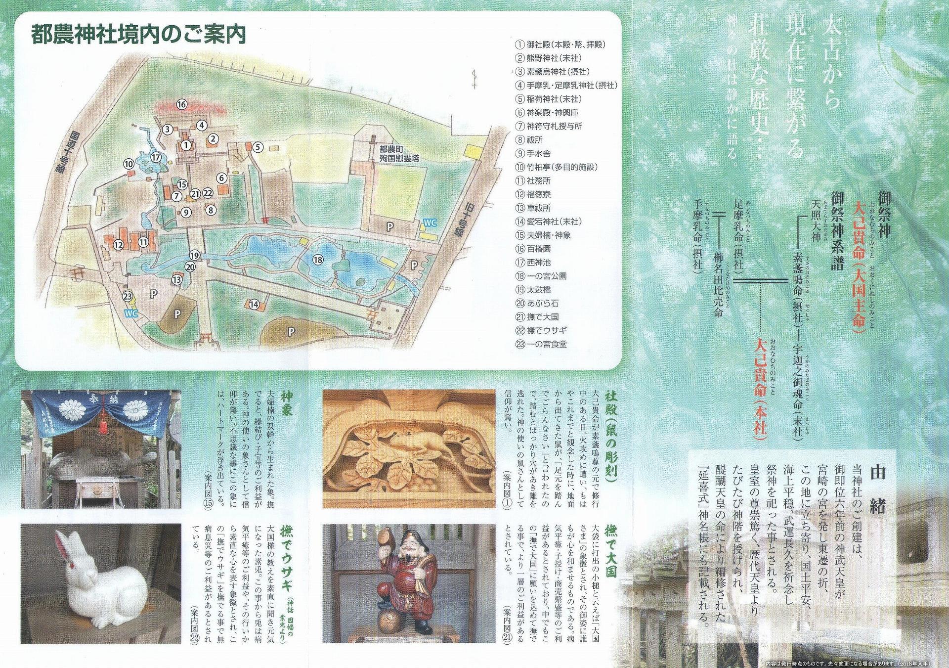 以下の、都農神社発行の「都農神社」リーフレットは、現地にて入手したものです。