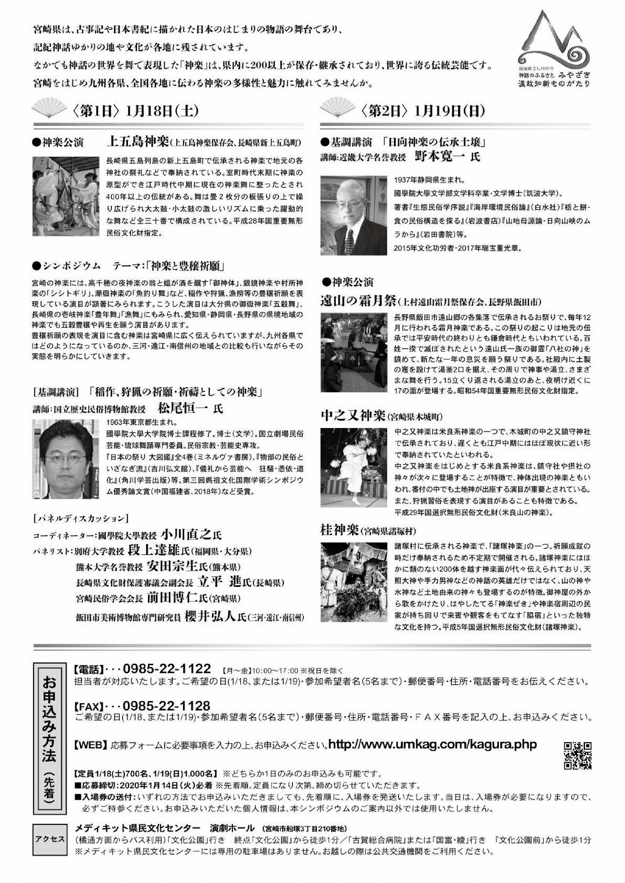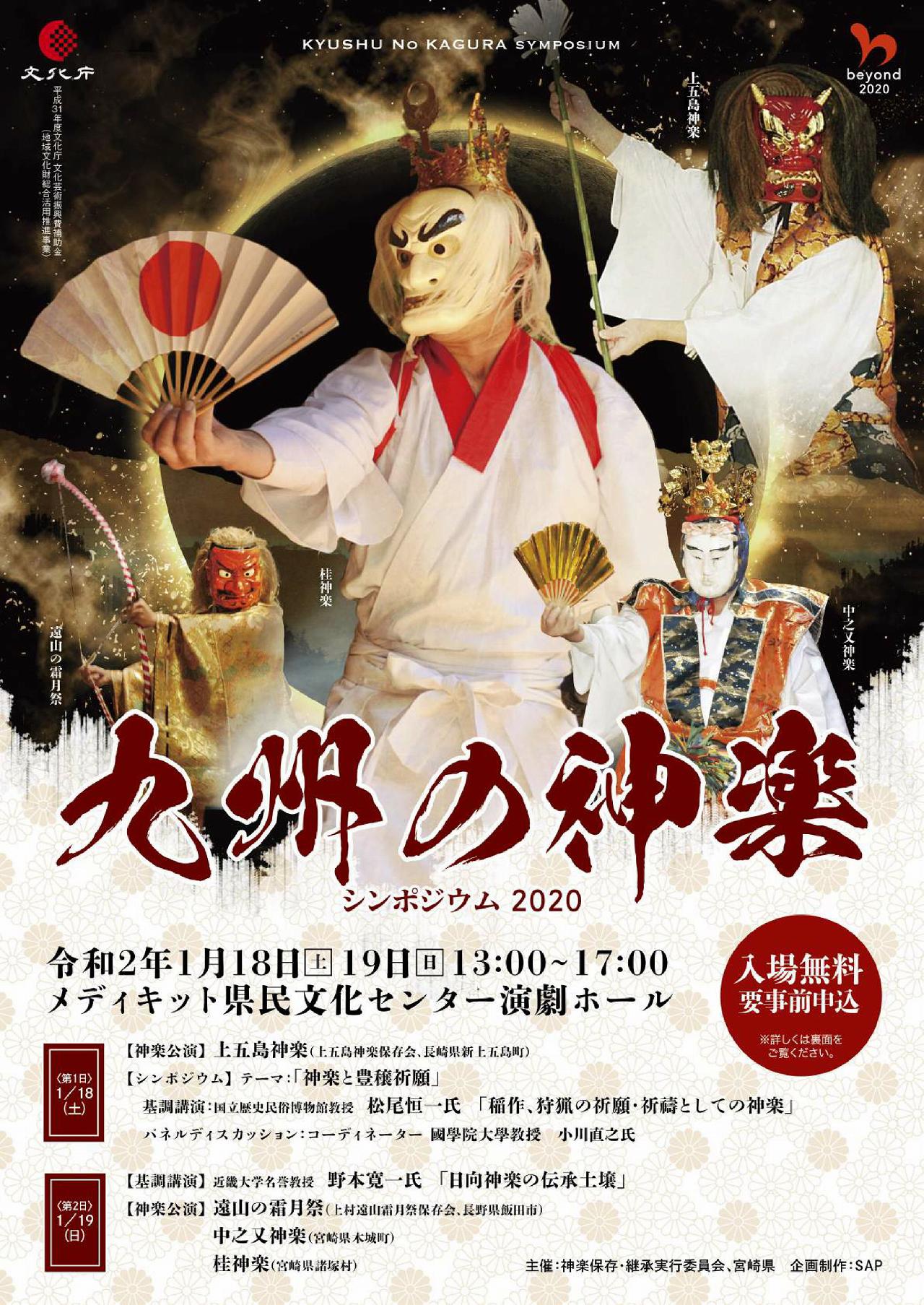 以下の、宮崎県発行の「九州の神楽シンポジウム2020」チラシの掲載内容は、先々変更になる場合があります。