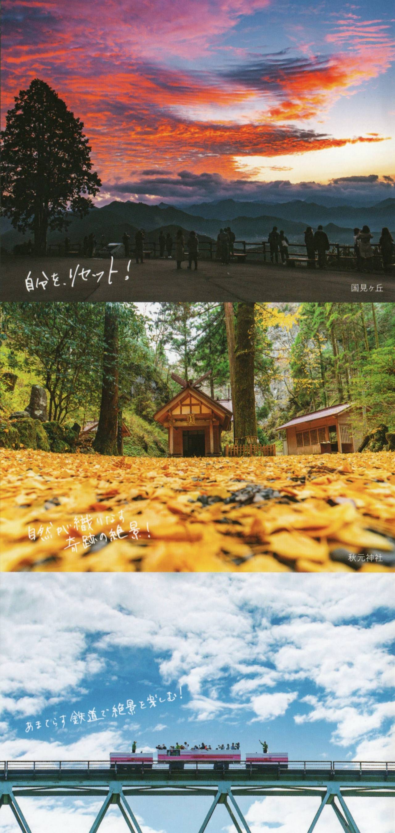 以下の、高千穂町観光協会・高千穂町企画観光課発行の「神都高千穂 高千穂が待ってる」リーフレットは、2022年6月入手したものです。