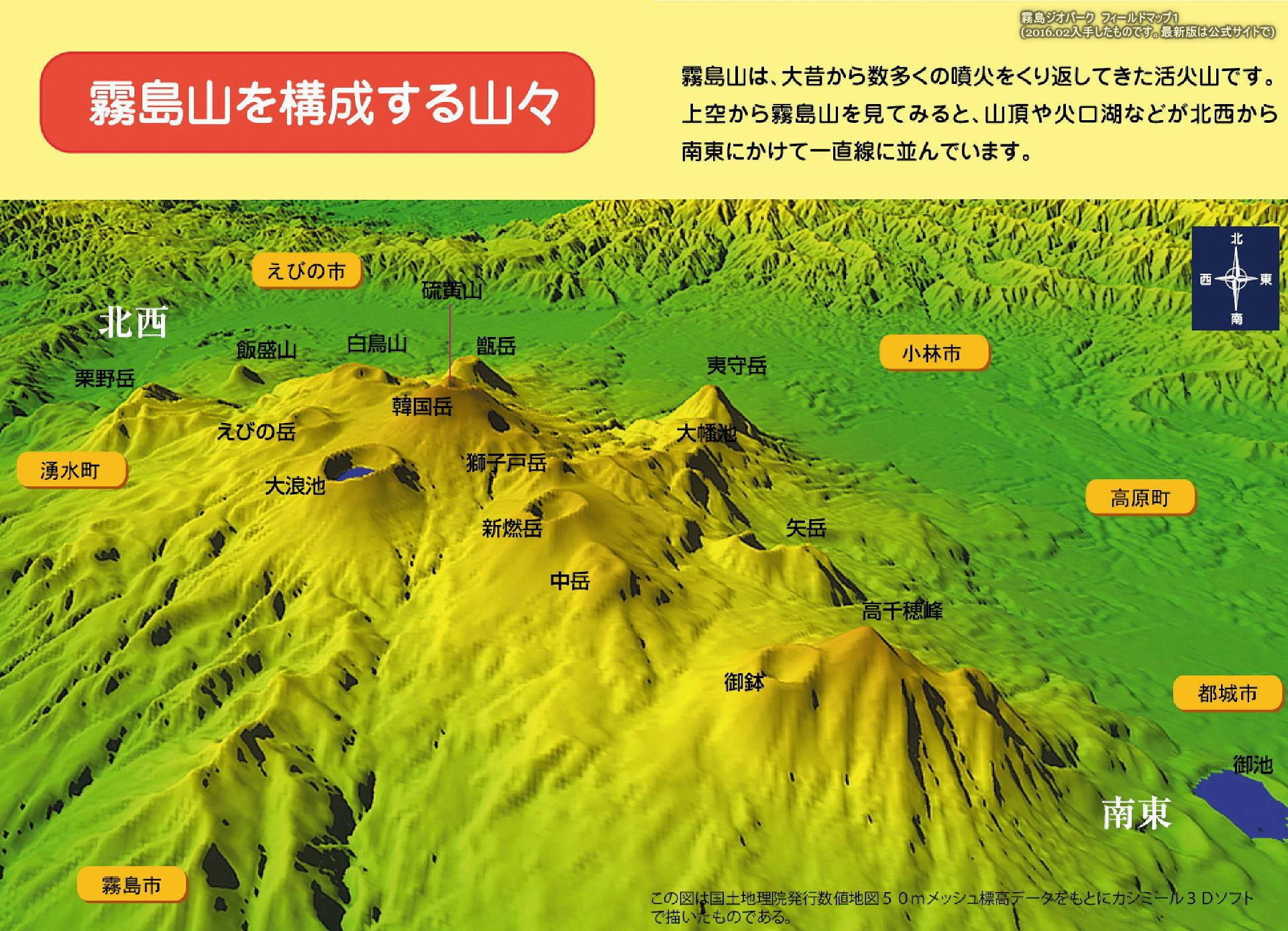 このページは、霧島ジオパーク公式サイトで公開しているフィールドマップが、原稿そのままのPDF形式で、画面で見ると片面反転してたり図が離れてたりと、見辛い為、一般的な画像形式(JPG)に置き換え、画面で見やすいように作成したものです。
