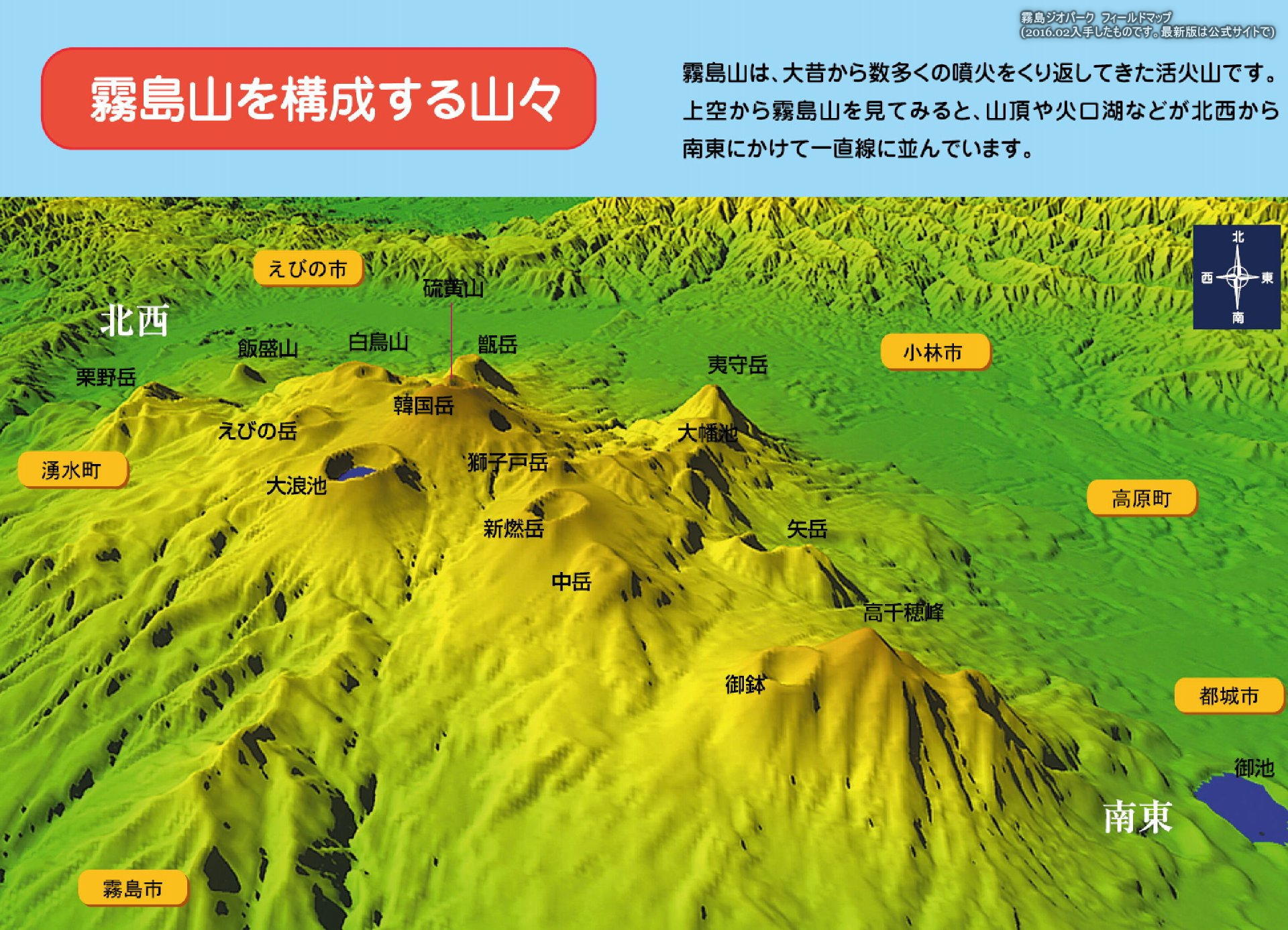 このページは、霧島ジオパーク公式サイトで公開しているフィールドマップが、原稿そのままのPDF形式で、画面で見ると片面反転してたり図が離れてたりと、見辛い為、一般的な画像形式(JPG)に置き換え、画面で見やすいように作成したものです。