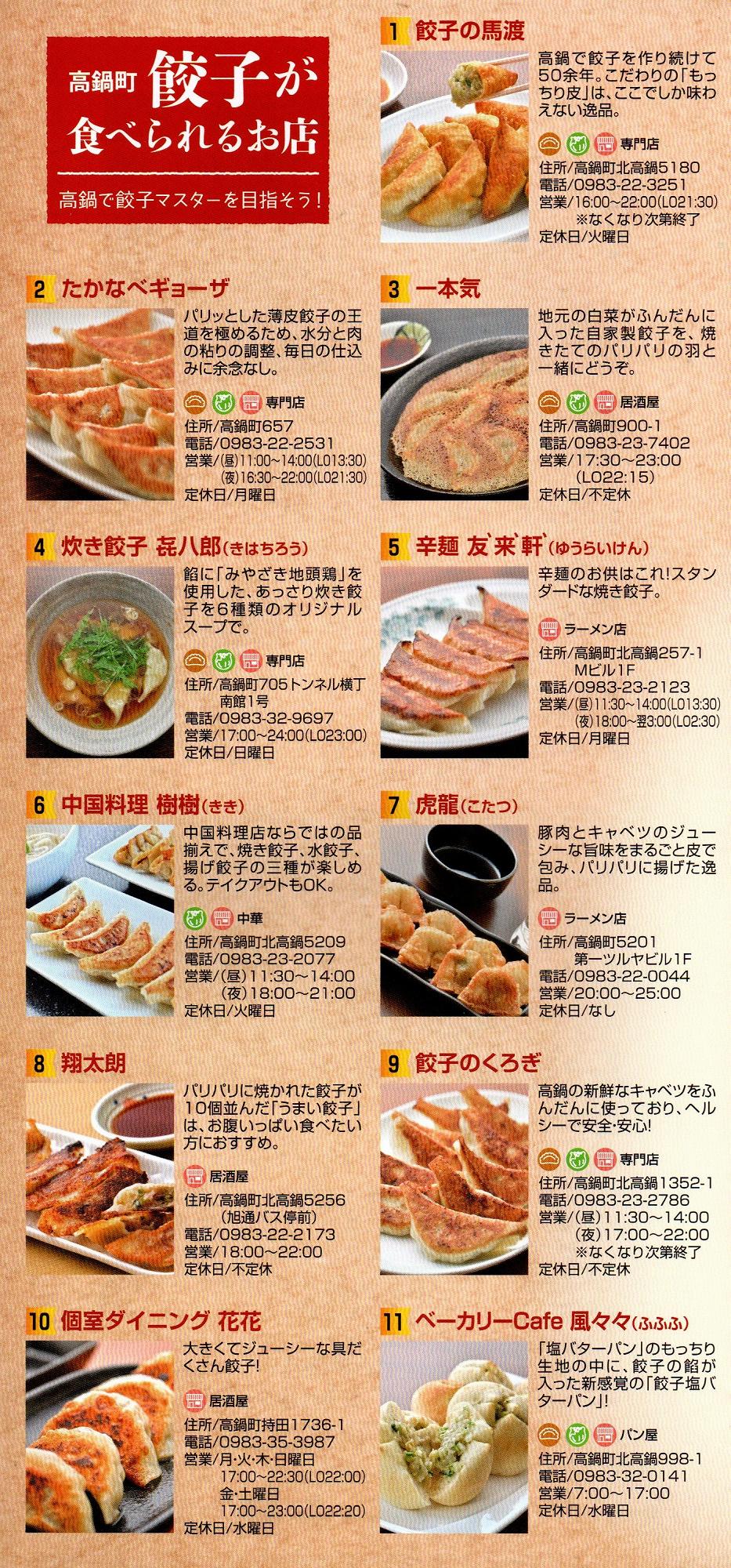 「高鍋は餃子やっちゃが」高鍋町で餃子が食べられる店の紹介リーフレット