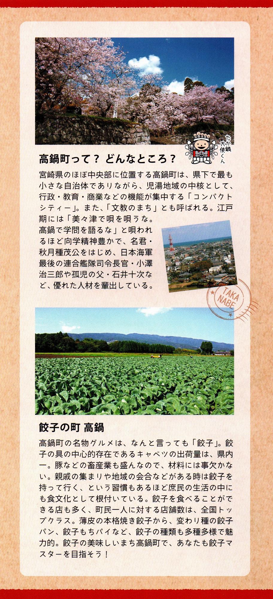 以下の、高鍋町地場産業振興会発行の「高鍋は餃子やっちゃが」リーフレットは、2010年11月に宮崎空港で入手したものです。