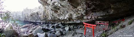 鵜戸神宮本殿同様、不動窟という波等の侵食によって出来た洞窟(海食洞)の中に波切神社と波切不動尊が鎮座しております。