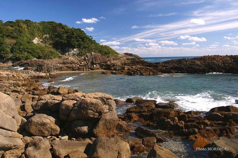 | 鵜戸の朝焼け (「神話巡り1300円ツアー」では鵜戸は訪ねません) 鵜戸神宮付近で撮影したものです。 |
