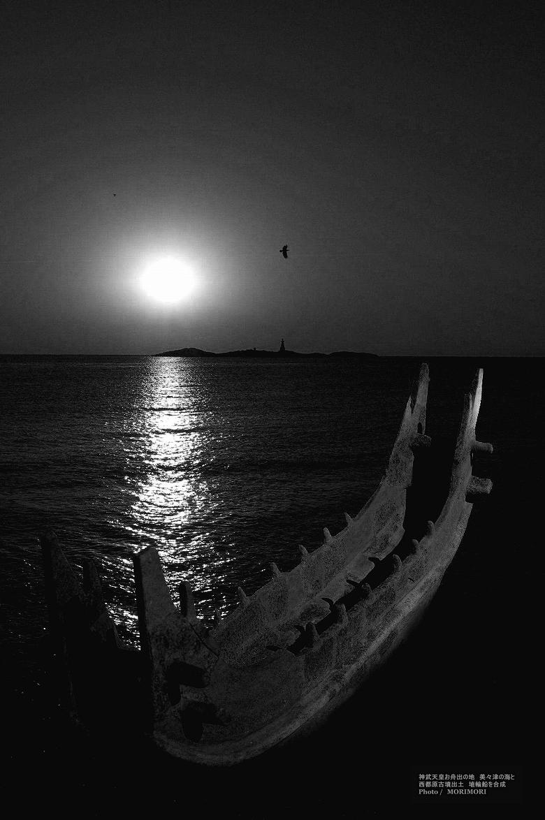 神武東征 お舟出の地と伝わる 美々津の海古事記では・・「何れの処にいまさば、平らけく天の下の政を聞こしめさむ。なお東に行かむと思ふとのりたまひて、即ち日向より発ちて筑紫に」 日本書紀では・・ 「冬十月丁巳の朔……日向より諸皇子・舟軍(ふないくさ)を率いて東征」。 美々津には、海軍発祥の地の碑があり、この碑にある古代船は、この埴輪船と同じ形をしております。 神武天皇は、船形埴輪のような形の古代船で、東へとお舟出されたのでしょうね。 |