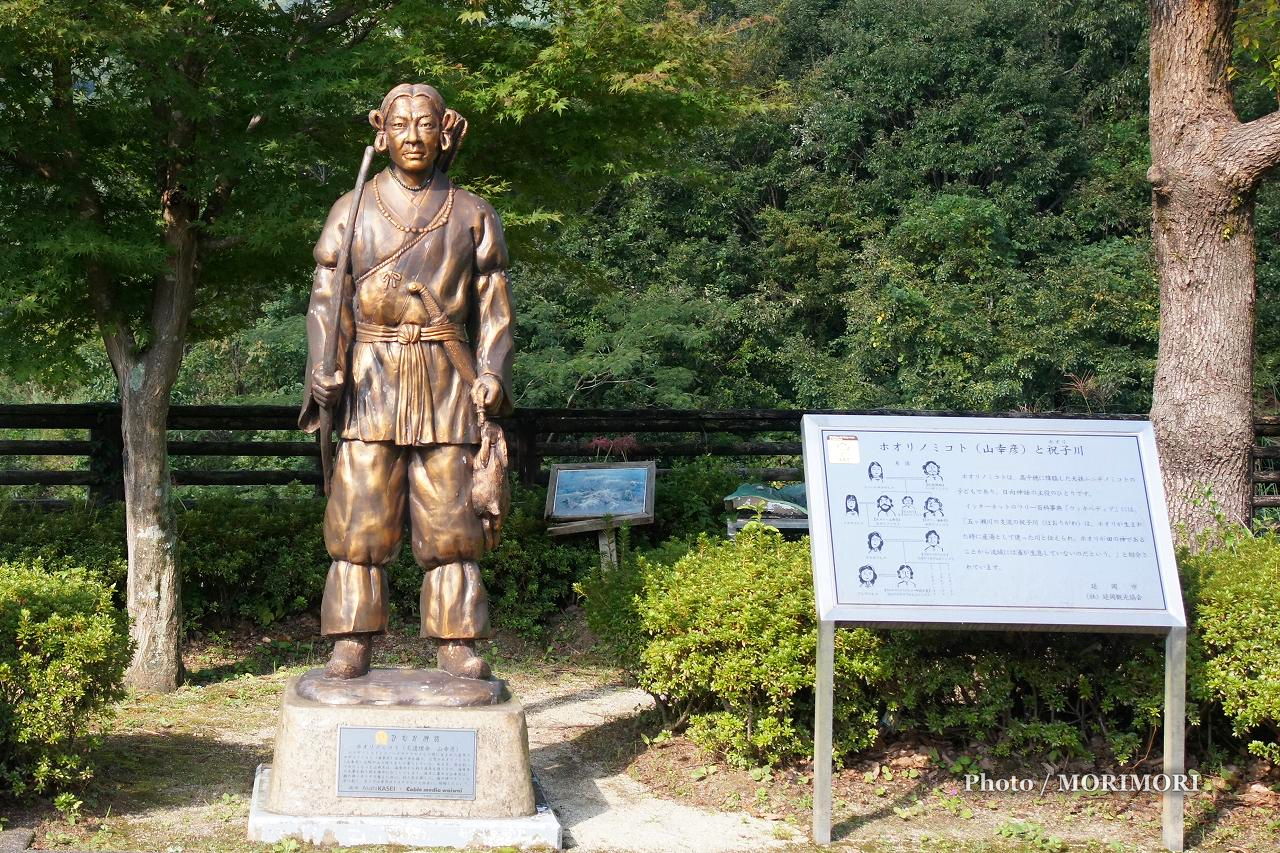 祝子川温泉美人の湯の駐車場近くにある、ホオリノミコト(山幸彦)の像。 |