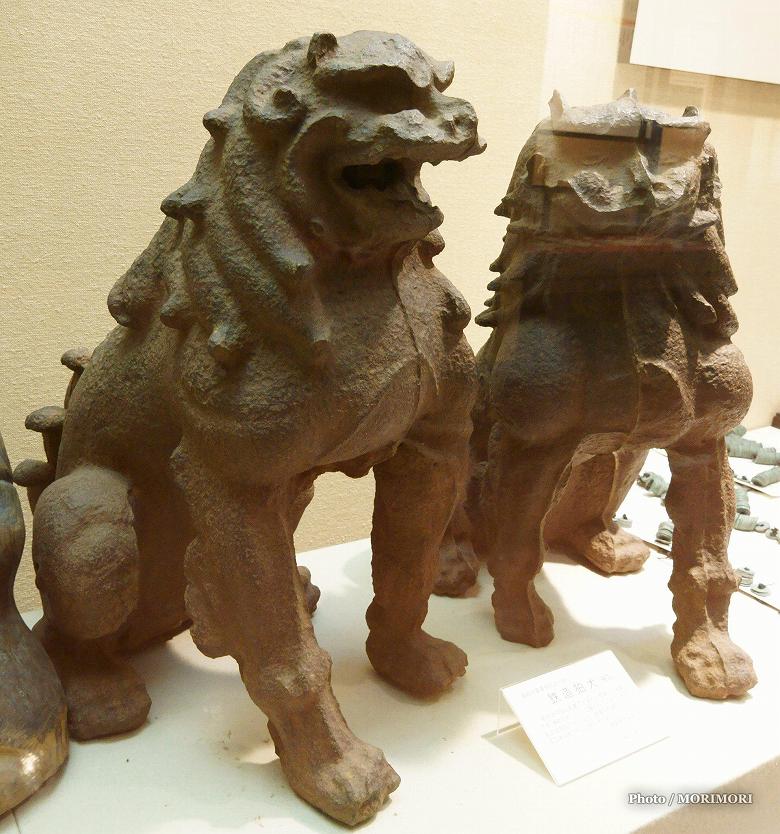 以下の向山神社の鉄造(鉄製)狛犬(現物)は、高千穂町歴史民俗資料館で撮影したものです。