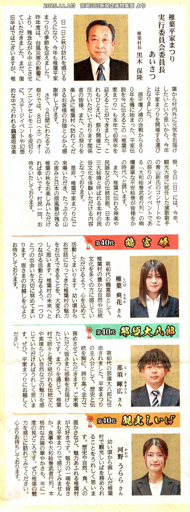 2025年(令和7年) 椎葉平家まつり 宮崎日日新聞企画特集より