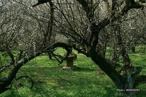 月知梅の梅園内は、根の保護の為、立ち入り禁止ですので、外周から見学します。一辺数十メートル程ですので、歩いて一周されると良いかと。