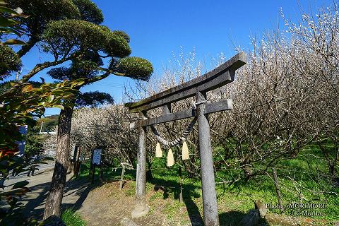 梅園の横には菅原道真の霊を祭った太宰府天満宮の分神、月知梅天満宮が鎮座する。
