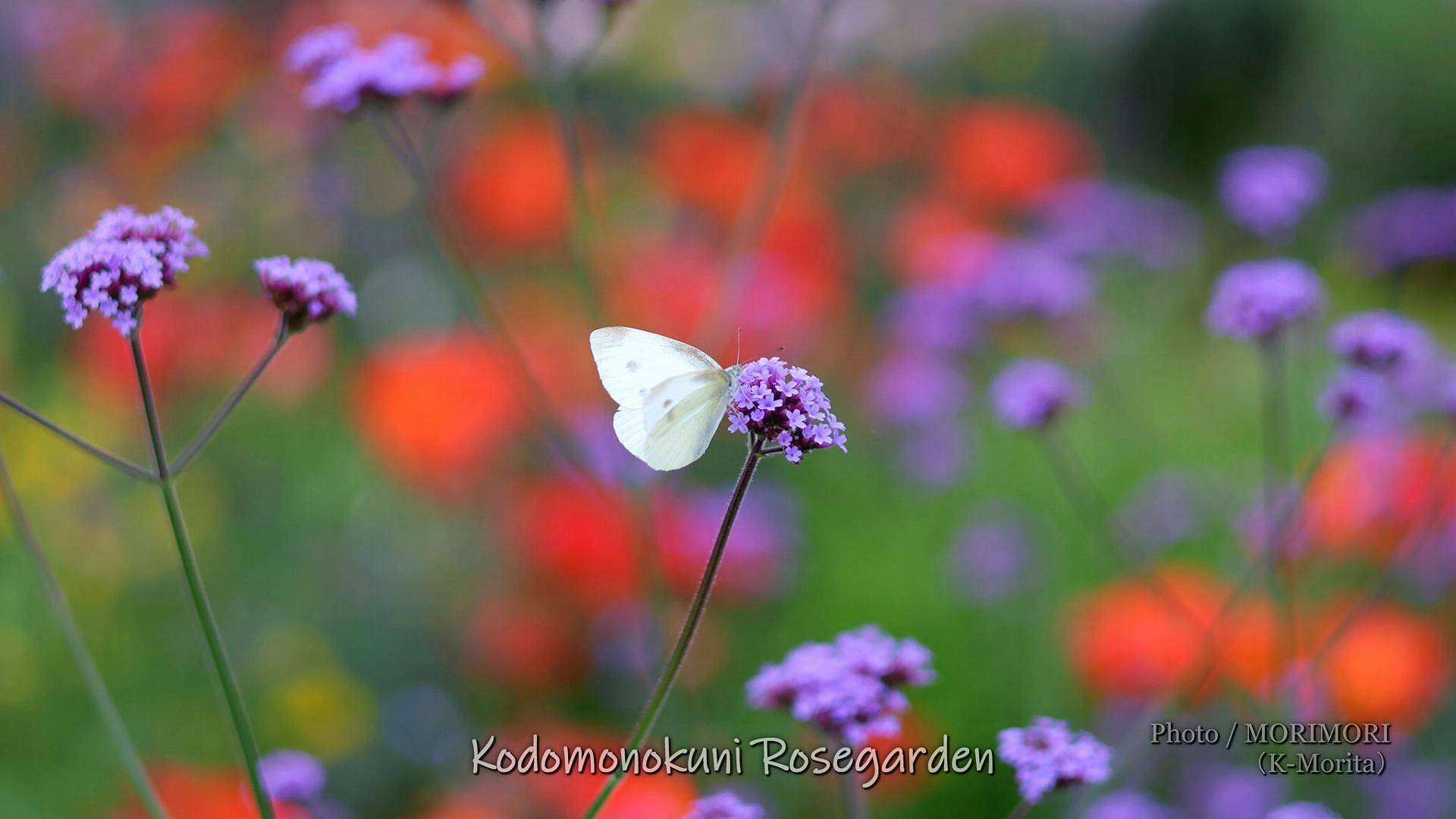 紫色の花はおそらくモンシロチョウの好きな「ヤナギハナガサ」ではないでしょうかね?