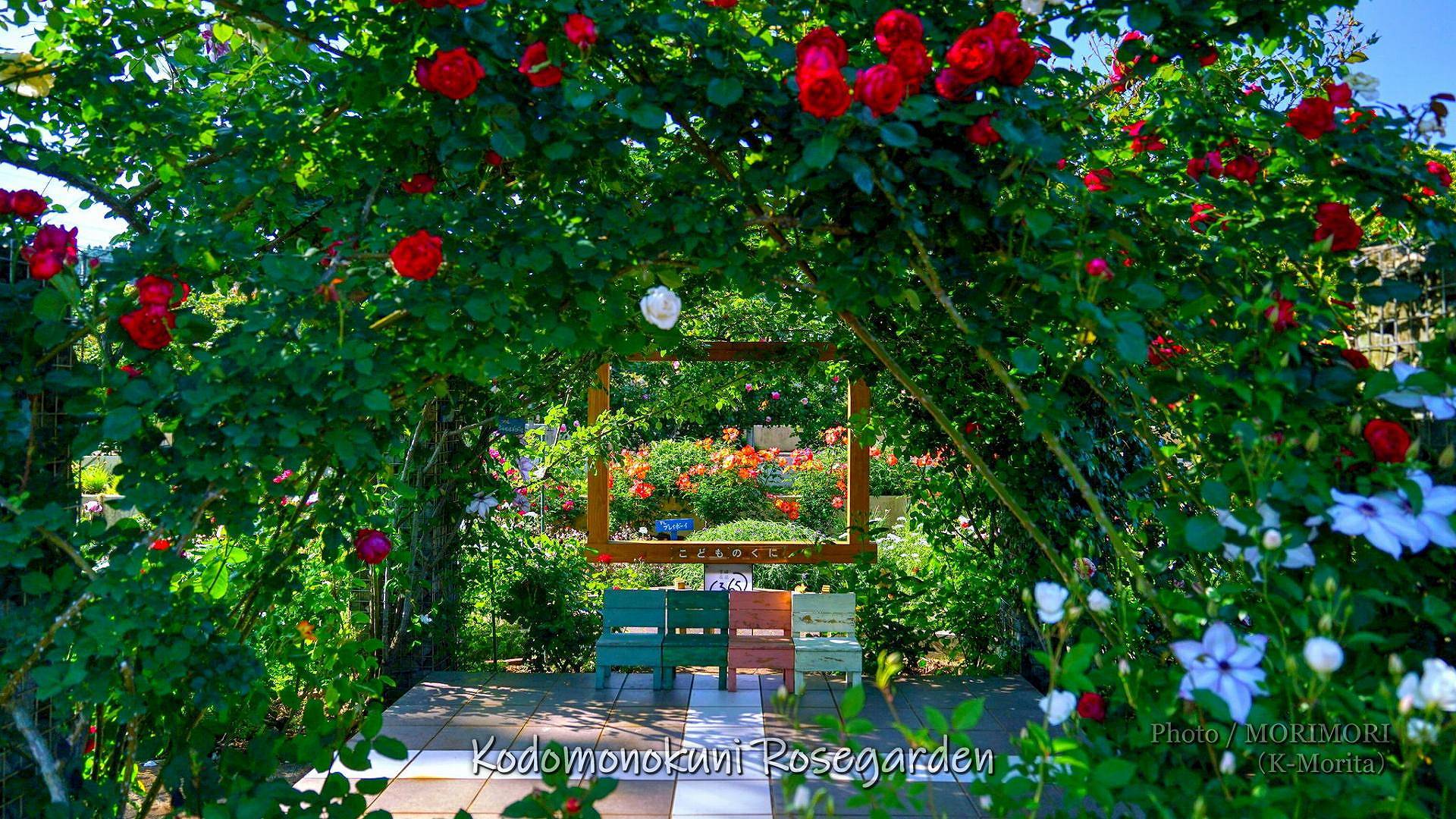 バラ園中心にある「はるかぜ」と名付けられたドーム状のツルバラはスタッフが長い時間をかけて作り上げたもので「必見」。