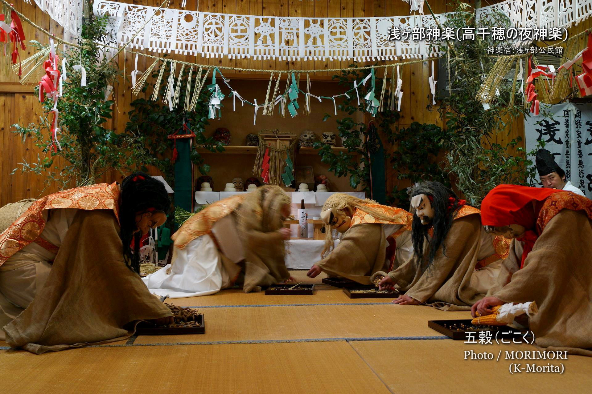 「稲・麦・豆・大豆・小豆」、「稲・麦・粟・稗(または黍)・豆」が五穀といわれる。(高千穂の夜神楽33番ミニ解説より)