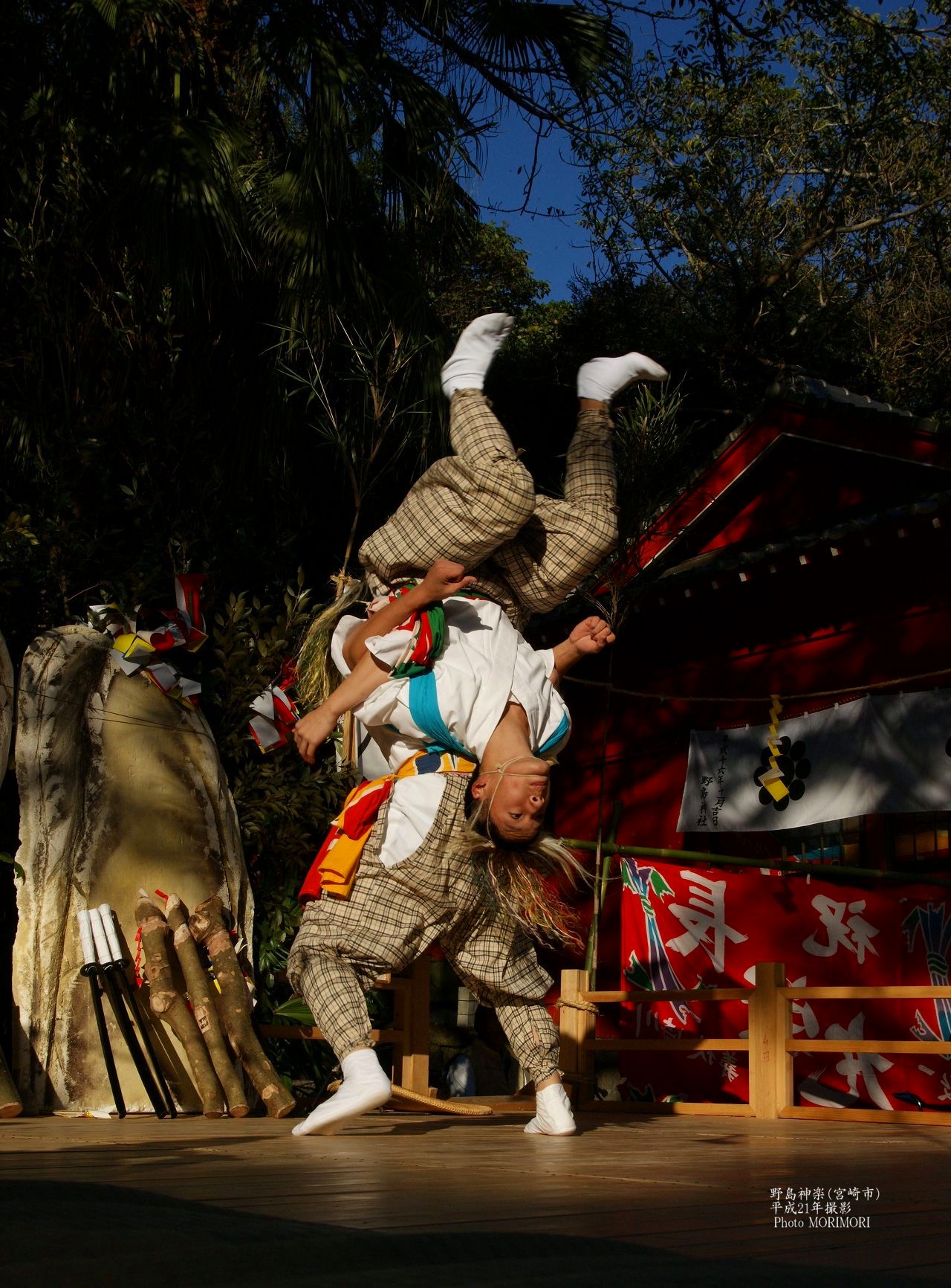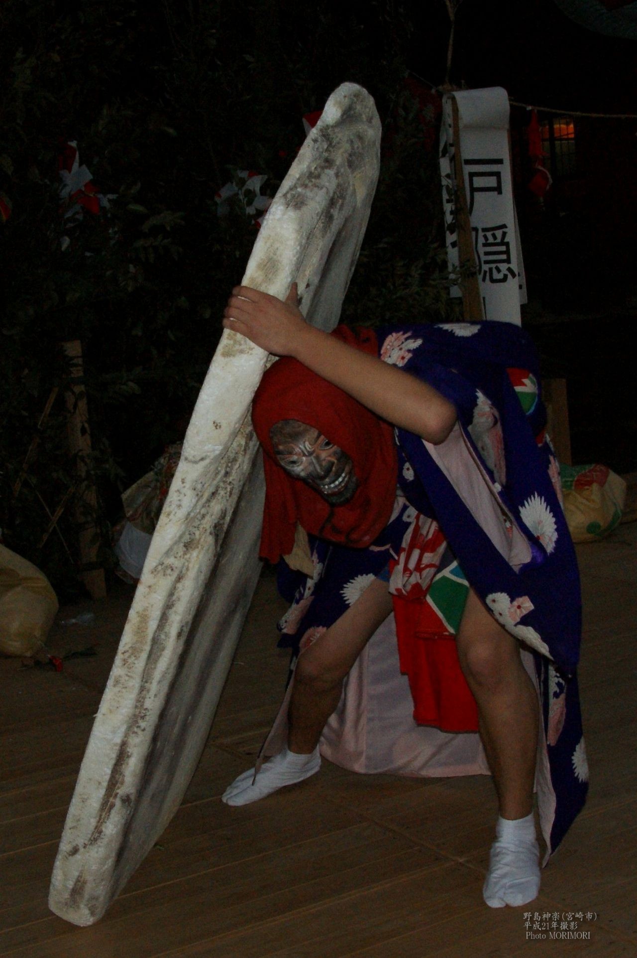 この写真は平成21年11月23日、野島神社で舞われた野島神楽を撮影したものです。