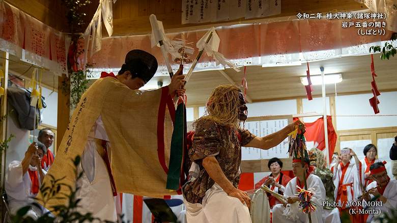 桂大神楽 しょうぎょう伊勢神楽 しばとり 戸取り 〔諸塚神楽〕