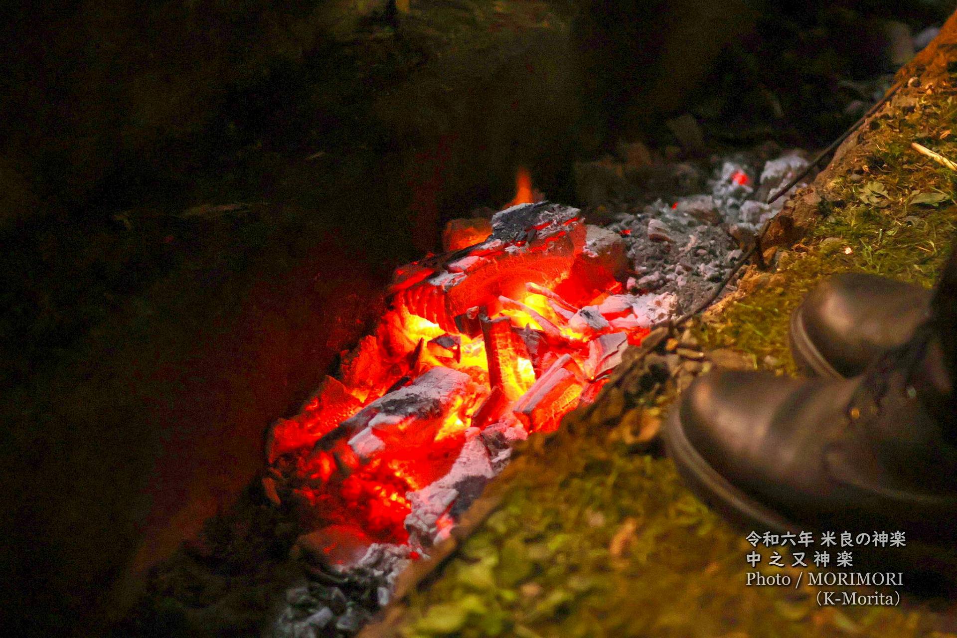 御神屋の縁、二面の地面には「炉」が数カ所掘って作ってあり、ドラム缶で燃やした薪や炭などをボランティアの方が、スコップで適時補充してくれ、ありがたく寒さを凌ぎ、見学出来ました。