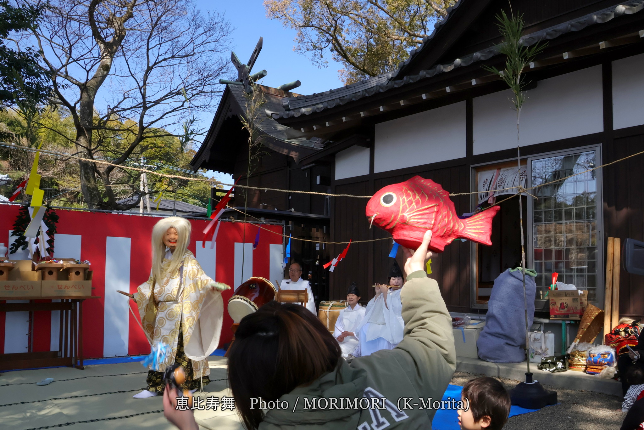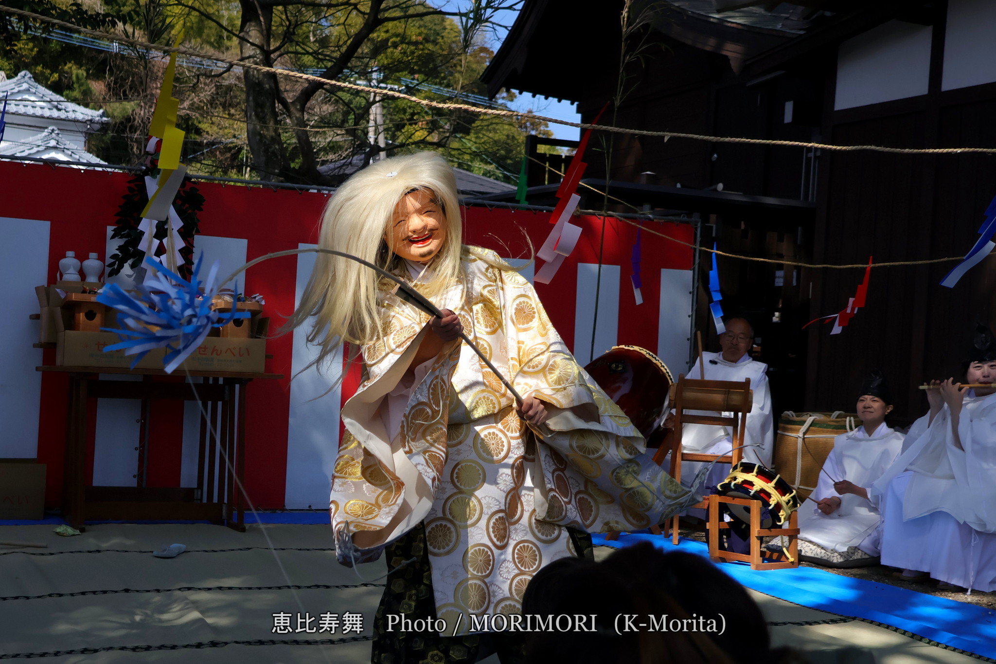 恵比寿舞は、大国主命の第一の御子で美保神社の御祭神とされる八重事代主命(やえことしろぬしのみこと)である、