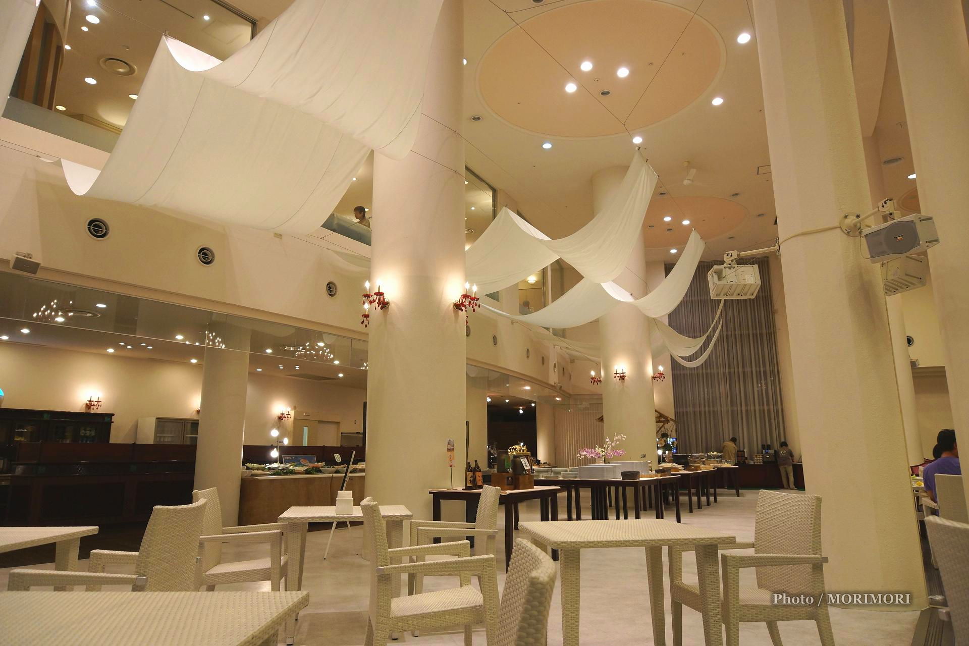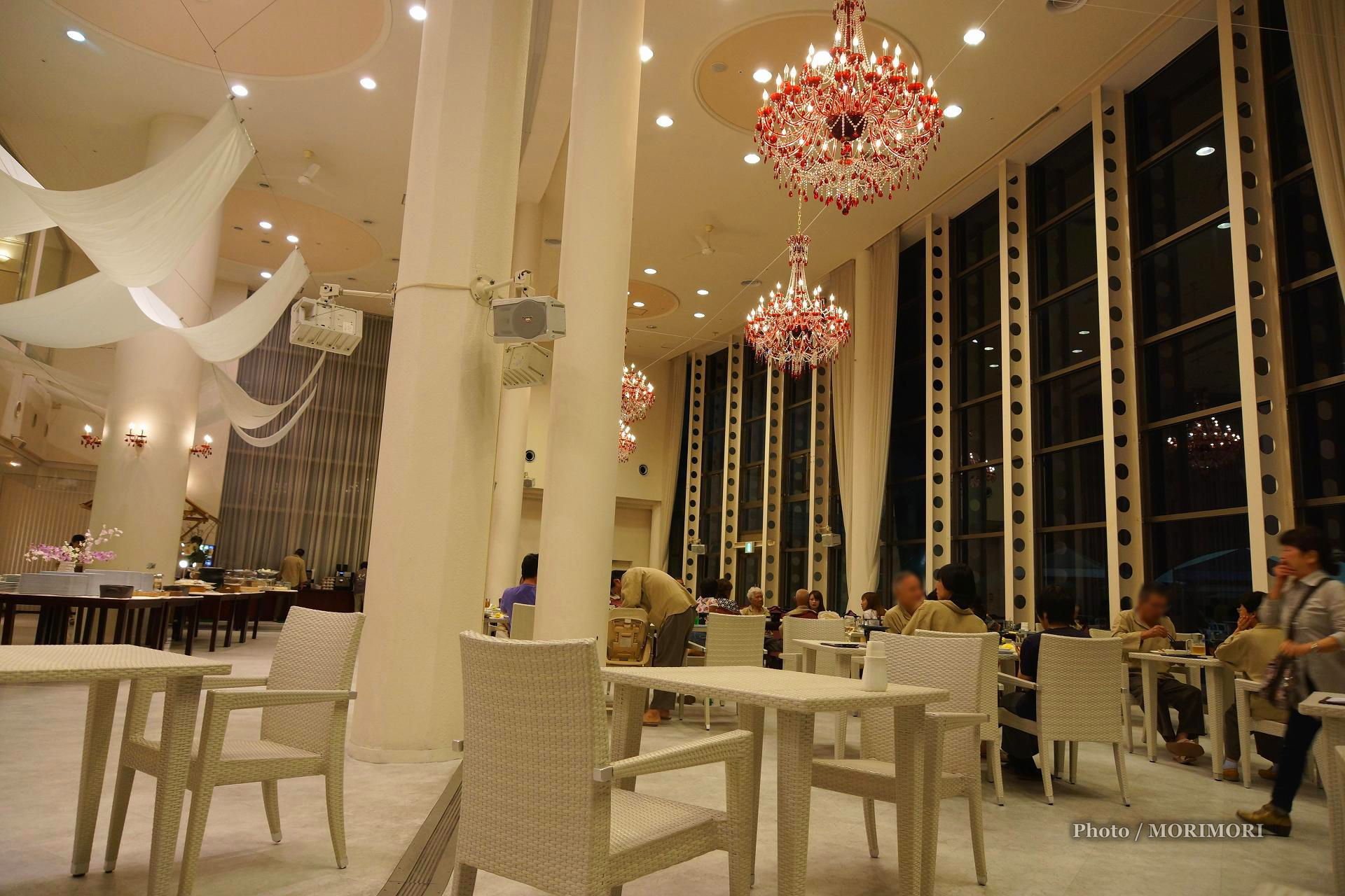 今回のプランでの夕食は、予約時に中華料理とバイキングをセレクト可。私たちはバイキングをチョイス。 「メインダイニング レッドフェアリー」で、旬な食材を使用した郷土料理や、和洋30種類以上のメニュー。 |
