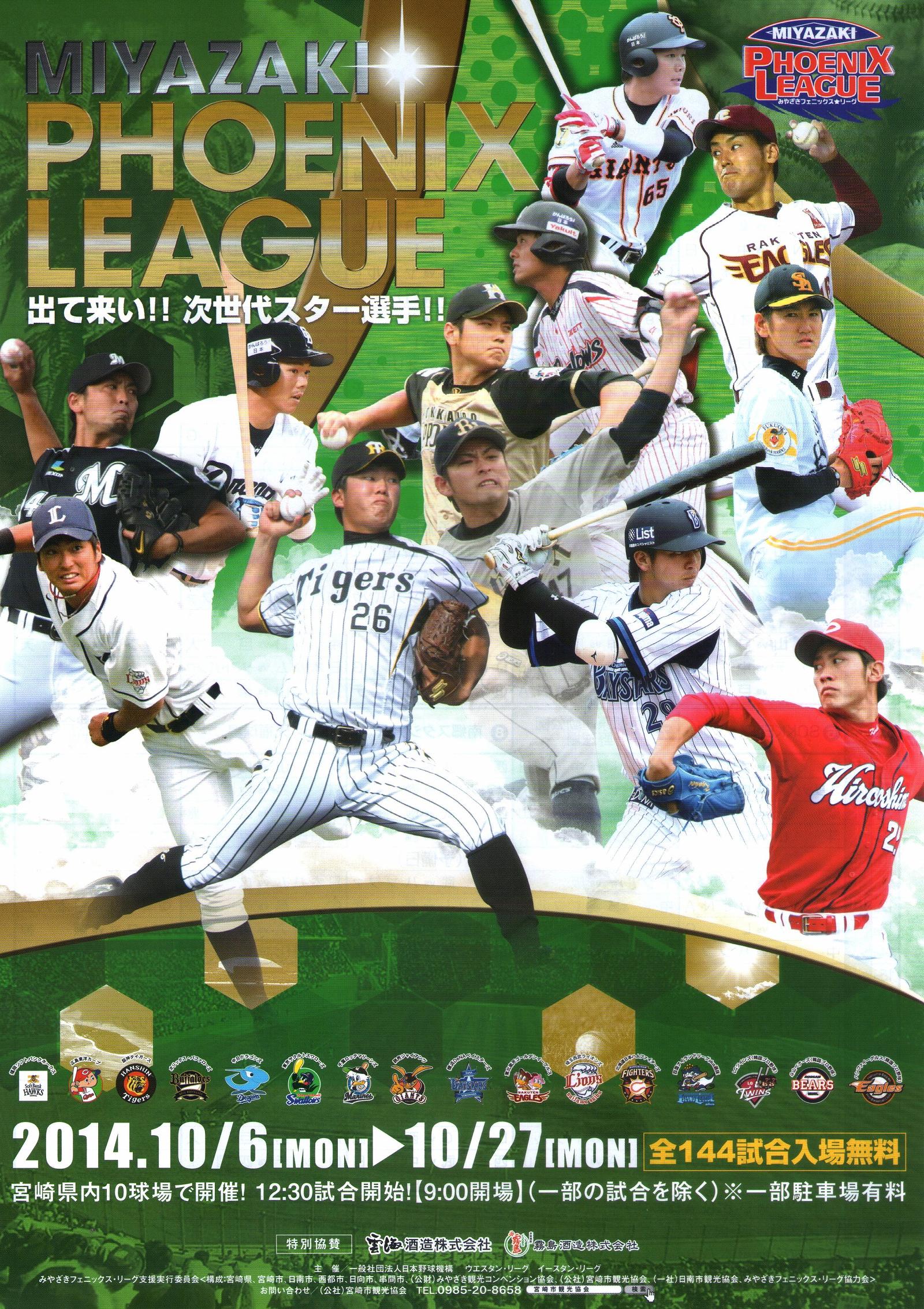 | みやざきフェニックス・リーグ2014 期間:2014年10月6日(月)〜27日(月) 観戦無料です。(県総合運動公園等、土・日等は駐車料金の要る球場もあります。) 関連リンク :日本野球機構サイト内ページ 追記 2014年 みやざきフェニックス・リーグ 一軍選手の参加予定阪神タイガース 1軍10/7(火) vs DeNA(生目の杜第2野球場) ソフトバンク 1軍 10/8(水) vs 楽天(SOKKENスタジアム) 10/9(木) vs ハンファ(KIRISHIMAひむかスタジアム) 10/11(土) vs 楽天(SOKKENスタジアム) 10/12(日) vs LG(KIRISHIMAサンマリンスタジアム宮崎) 10/8(水)読売ジャイアンツ vs LGツインズは、台風による選手の移動便の決行で中止との事。 参加チーム 【ウエスタン・リーグ】 福岡ソフトバンクホークス、 広島東洋カープ、 阪神タイガース、 オリックス・バファローズ、 中日ドラゴンズ 【イースタン・リーグ】 東京ヤクルトスワローズ、 千葉ロッテマリーンズ、 読売ジャイアンツ、 横浜DeNAベイスターズ、 東北楽天ゴールデンイーグルス、 埼玉西武ライオンズ、 北海道日本ハムファイターズ 【韓国プロ野球】 ハンファイーグルス、 斗山ベアーズ、 LGツインズ 【四国アイランドリーグplus】 四国アイランドリーグplus選抜 使用球場 (当サイト内に関連ページがあるものはリンク記載) |