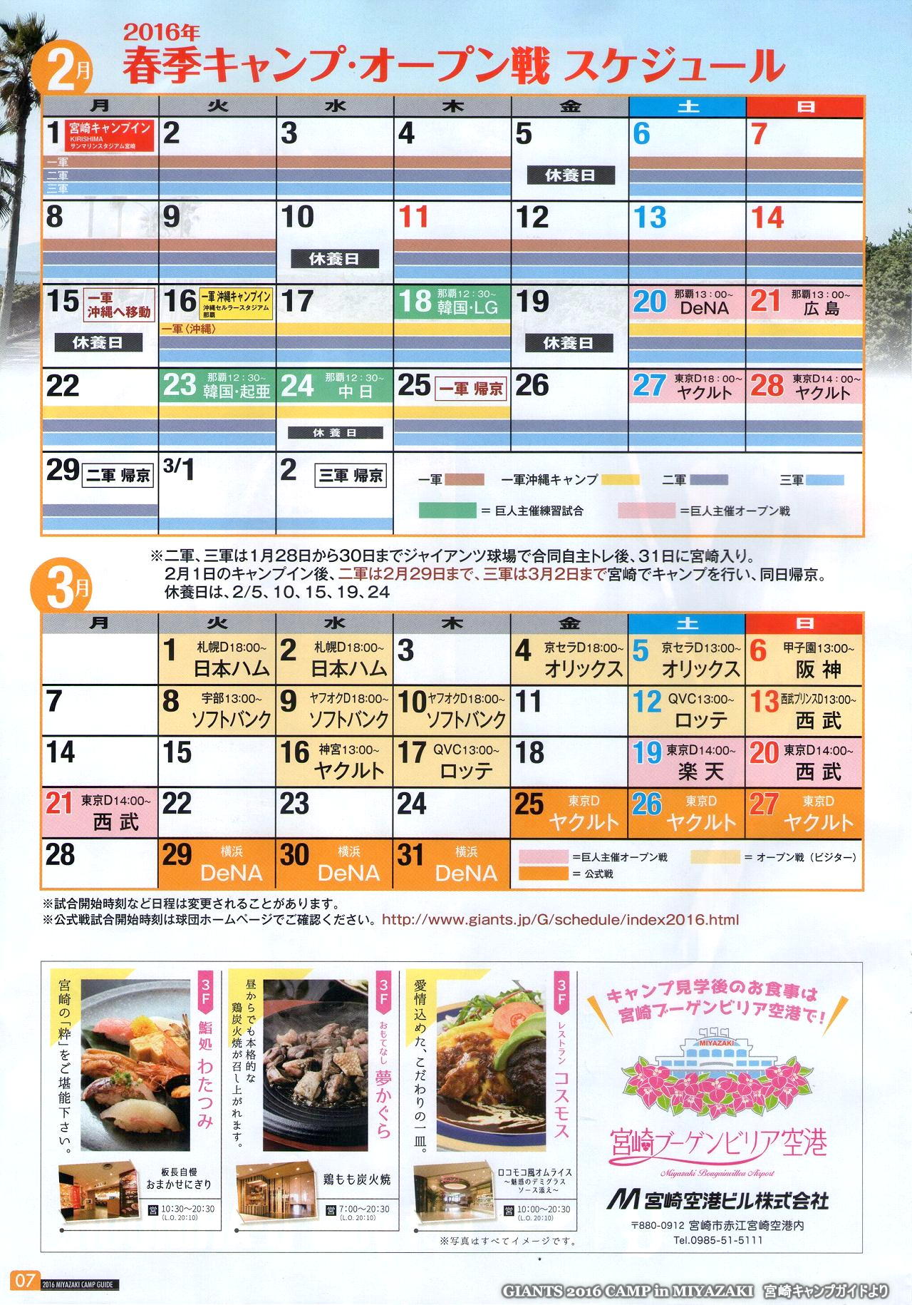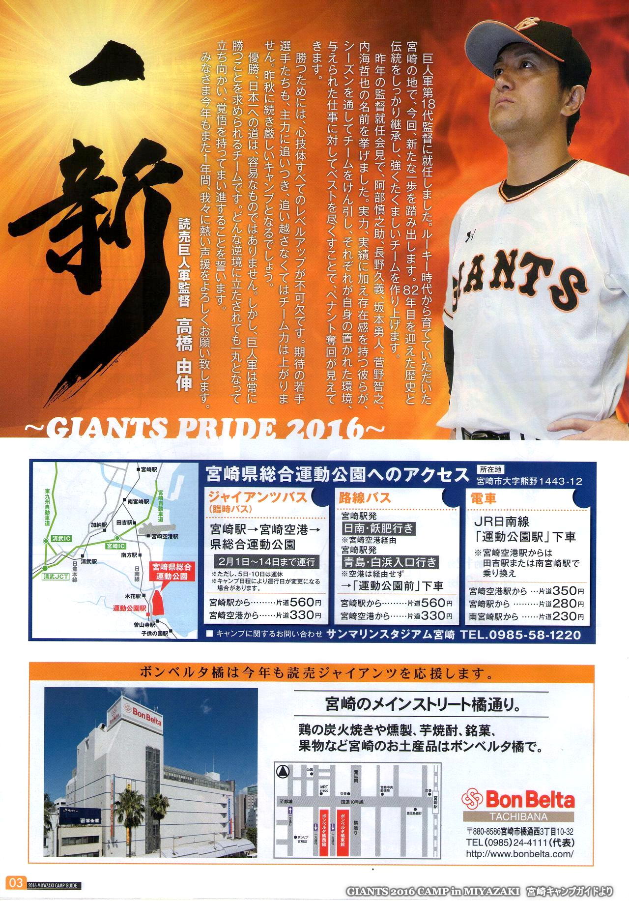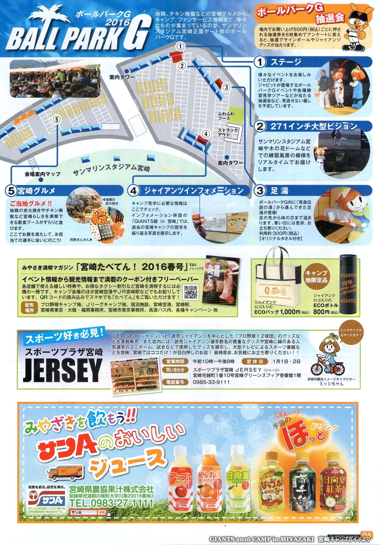 2016年 読売ジャイアンツ宮崎キャンプガイドより