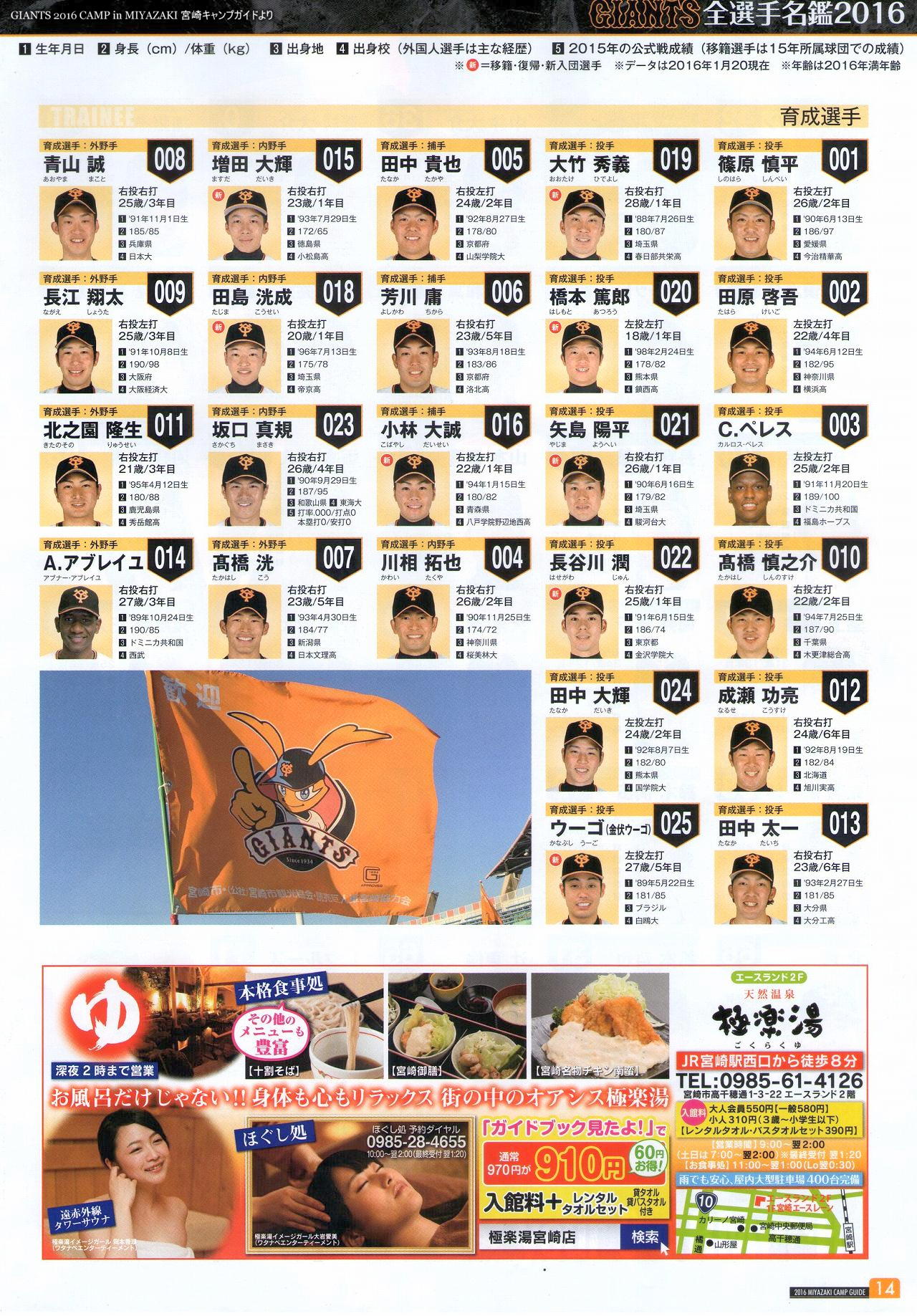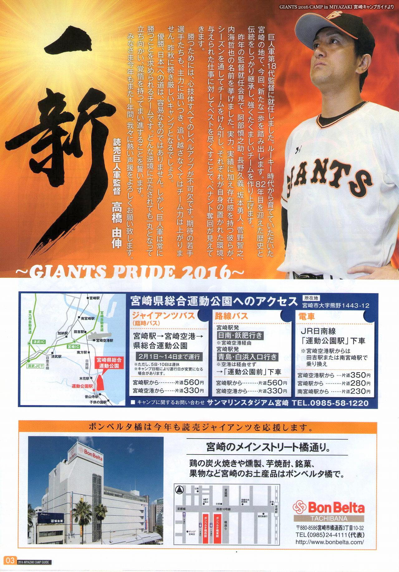 GIANTS 2016 CAMP in MIYAZAKI 宮崎キャンプガイドより