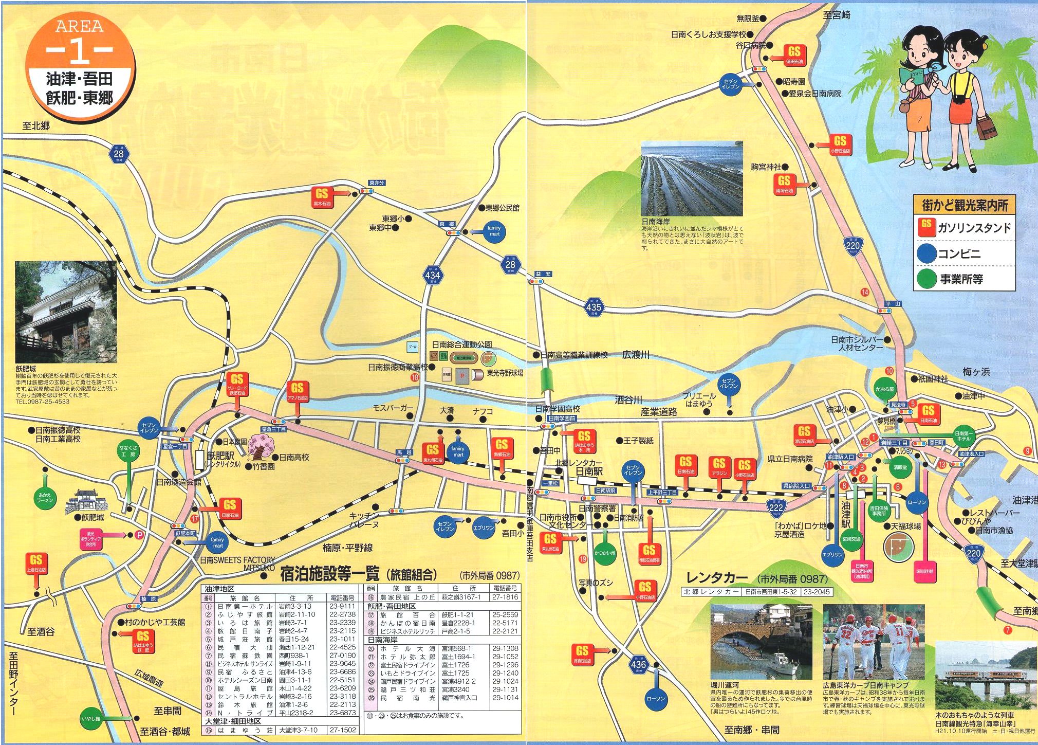 日南市観光マップ|街かど観光案内所 GUIDE 広域(油津・吾田・飫肥・東郷)(日南市発行)2012年2月に入手した、日南市の観光地図です。 情報は発行時点のものです。先々変更になる事もあります。下記のリンクをクリックすると、該当地図ページへ移動します。 PDFの良い方は→ PDFで表示(3M弱です。) 現在表示中の地図は ( 広域(油津・吾田・飫肥・東郷) ) です。 TOP 広域(油津・吾田・飫肥・東郷) 飫肥 油津 日南海岸・酒谷・細田、大窪、大堂津 北郷町 南郷町 |