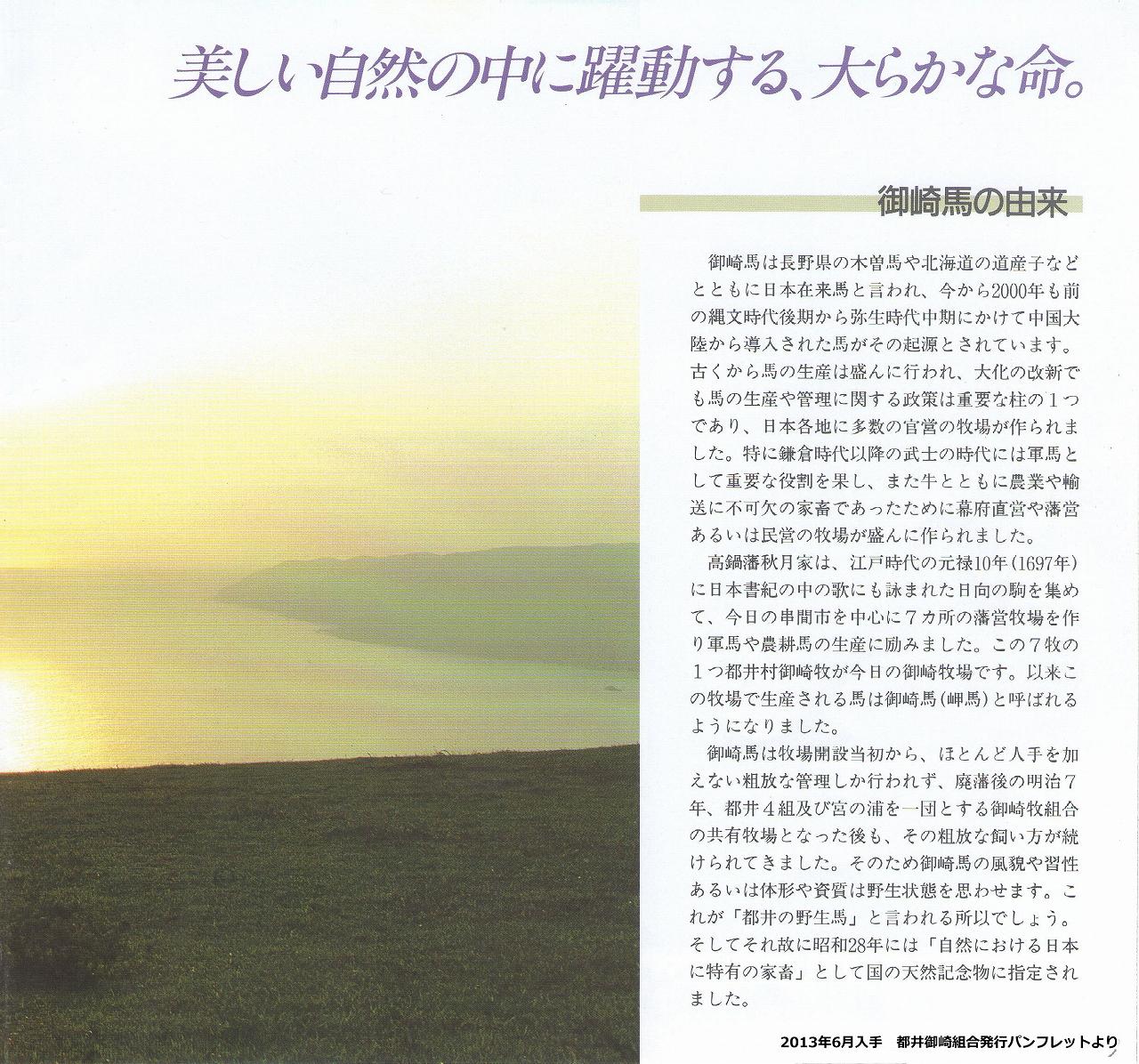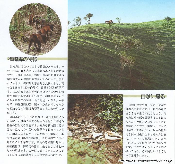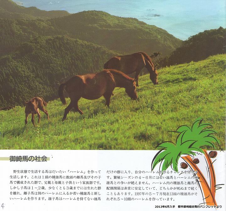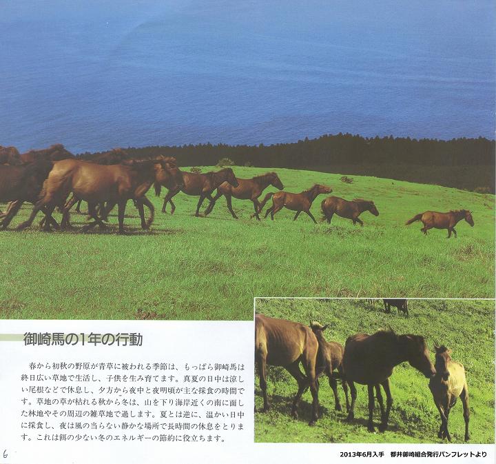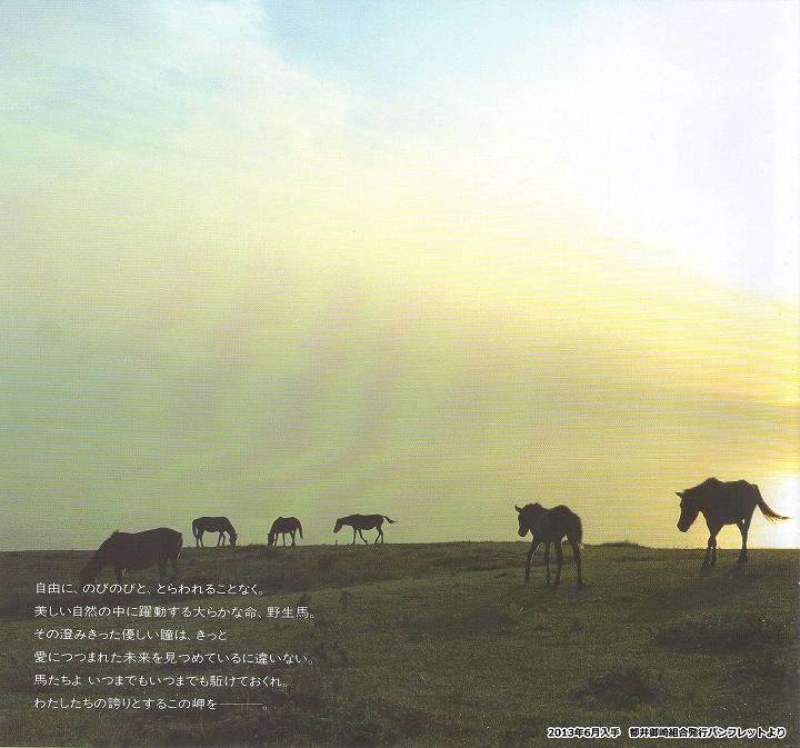 このため私たち組合員は、「御崎馬」の保護と管理に懸命の努力をしているのですが、多額の費用を必要としますので、当地にお出でいただきました皆様方にも馬の生活を理解していただき、より以上に可愛いがっていただきますと共に、滅亡を救うためにも、保護管理にご協力下さいますよう切にお願いいたします。