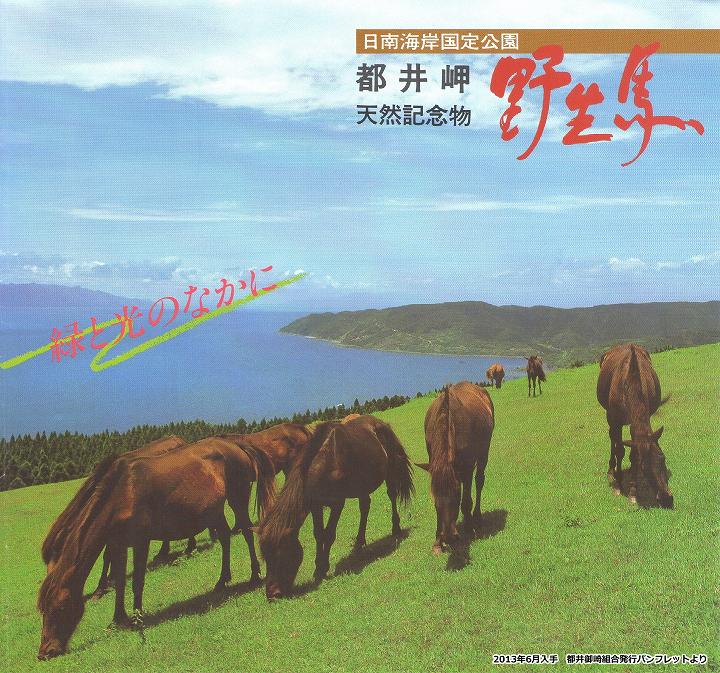 「都井岬」には、丘に林に谷に群れ遊ぶ「御崎馬」が棲息し、私共の組合が管理しております。今日では病傷・事故、飼料不足などで、戦前の半数に減っています。このままでは滅亡の一途をたどることになります。