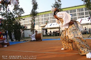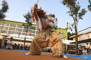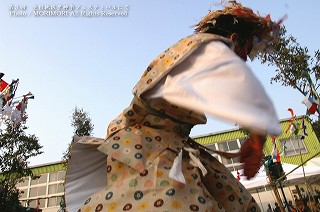 | 弟・須佐之男命は高天原での乱暴、悪事を憂いた天照大御神は天の岩戸に閉じこもってしまわれた。 (中略) 「手力男命」が岩戸を開いたその時、すかさず「天太玉命」は注連縄を「天照大御神」の後方に張る。 「これより後は、この中に入ることは叶いません」 「天照大御神」は岩屋戸の中に戻ることができず、再び春の太陽の光が戻る事となった。 「太玉」は「天太玉命」が天の香具山の榊を根っこから抜く場面等を交えた動きの激しい勇壮な舞です。 番付が「太玉」舞いより、この場面に間違いと連想、上の説明を書きましたが、 保存会の資料によれば 「手力男命(タジカラノオミコト)が樹を根こそぎ起こす舞」との事でした。 |