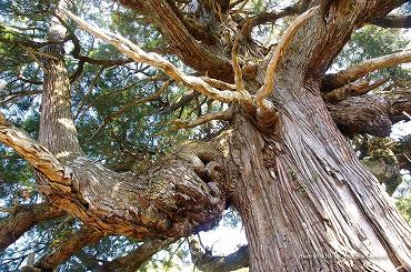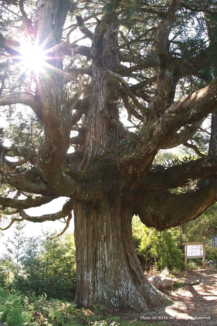 | 尾八重一本杉 : 西都市天然記念物(昭和46年6月指定) みやざきの巨樹百選(平成4年3月指定) 所有者 : 尾八重神社 尾八重一本杉は尾根にあり、高所で風当たりが強いためか樹高が樹齢の割りに伸びず、樹勢が下部に蓄積、低くどっしり枝を構えた様相、樹の下から見上げると一段と凄い圧倒的な迫力。この杉は横から見るより下から見るべき杉かと感じました。 2011年4月現在、木の周りに保護柵等はありません、見学の際には、くれぐれも根を踏まないよう、足元に十分注意を。 西都市教育委員会記載、現地案内板には以下のような事が書かれておりました。(記載された日付平成?年?月?日、←消えており不明)“尾八重一本杉 樹高:22.5m、根廻り:9.5m、推定樹令:400年〜450年。 この地の層は、中世層砂岩の風化したもので、屋根の為母岩が露出し土層は浅く、地味も悪い。 風当りが強く、伸長の良好ではない。 栄養も下部に蓄積し独特の樹形を成している。 この山道は昔時南郷村渡川へ通じた悪路で、天正5年(1577年)伊東三位入道義祐一行が、島津勢に追討された時の由緒の土地でもあって、歴史的にも貴重な資料となっている。” 横にある、「みやざきの巨樹百選」(宮崎県)の案内板では “樹齢 600年 幹周・620cm 樹高・25m” ともありました。 → 現地案内板の写真 伊東マンショも見た?日向の歴史を見守って来た尾八重一本杉(ふと考えた・・妄想?) 樹齢600年だと、この杉が生まれたのは応永18年(1411年)(室町時代)となり、日向の国を治めていた伊東氏が現在の西都市の都於郡(とのこおり)城に居城、栄華を極めていた頃。 その日向一円を掌握した伊東氏も、元亀3年(1572年)木崎原合戦(現在の えびの市)で島津軍に敗れ、次第に勢力を落とし、5年後の天正5年(1577年)12月(伊東三位入道義祐の時代)、都於郡城落城とともに一族を連れて豊後(大分県)の大友宗麟を頼って落ちてゆくことになります。 これが世にいう「伊東一族の豊後落ち」、その道中、ここを通って行ったようです。 一行は、女、子供を含め約100名程、12月、厳しい寒さと、険しい九州山地を島津に追われながらの逃避行、途中で息途絶える者も多く、豊後の大友宗麟が出した迎えに、一行が高千穂町河内で合流した時には、半数も残っていなかったそうです。 残った一行の中に伊東義祐の外孫、後に伊東マンショ(当時8歳)がおりました。日本人として初めて「日本国の王子」としてヨーロッパの桧舞台に立ち、立派に外交の使命を果たした彼等の数々の偉業が、歴史学者によって明らかにされたのは、明治になってから、また、伊東マンショが西都市の都於郡出身であることがわかったのは昭和になってからとの事だそうです。 この杉が、樹齢600年、もし、1411年生まれとするならば、「伊東一族の豊後落ち」の時には樹齢166年、ここを通りかかった、伊東マンショは子供ごころに、この杉を見て、何を思ったであろう。 “あの伊東マンショも見た、日向の国を見守って来た、奥日向の巨人” なんてキャッチコピーを考えてみたり・・・ そんな歴史背景など、考えながら見ていると、また違った意味で感慨深いものがあります。巨樹ってほんといいものですね。 |