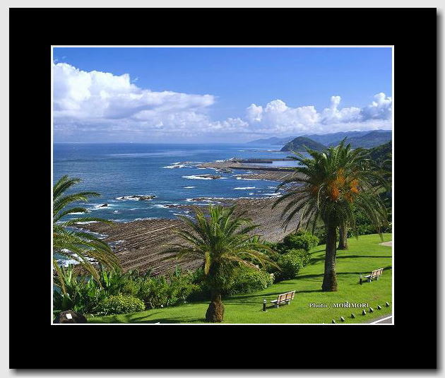 堀切峠、日南海岸の「はまゆう」は宮崎観光の父、故 岩切章太郎氏が海の色を引き立てるために植栽したものです。