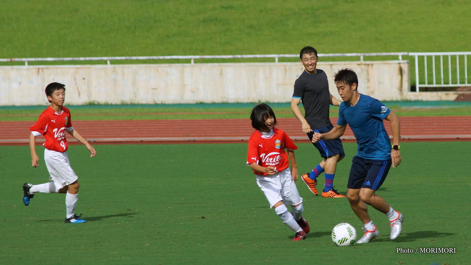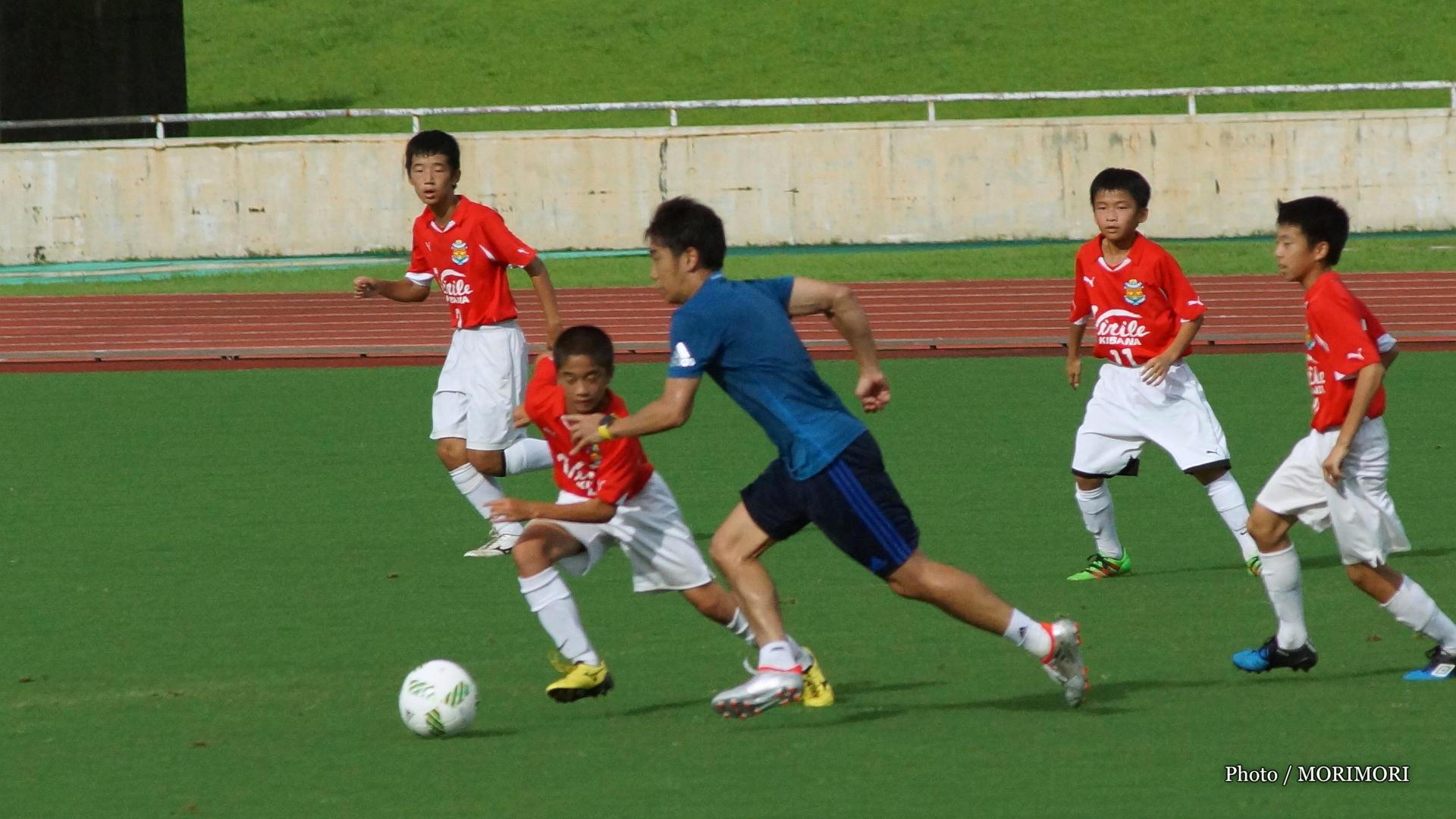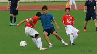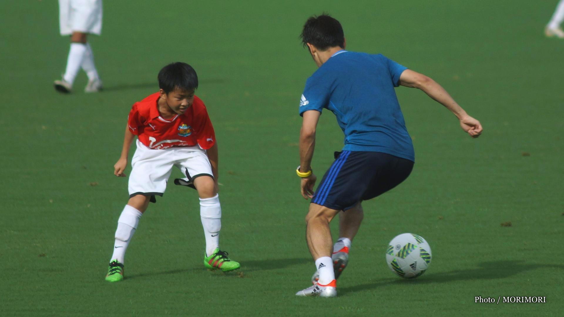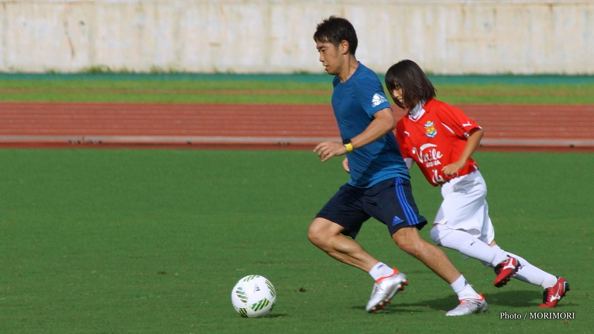 香川は鋭いターンでかわすなど華麗なプレーで川添を翻弄し「技術があって将来、楽しみな選手。ぜひA代表を背負う選手になるように、これからもひたむきに頑張ってほしい」とエール。