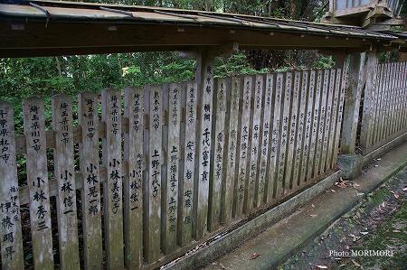 落立神社は、鳥居から参道両脇、神社敷地内を囲む奉納板が見所の一つ。